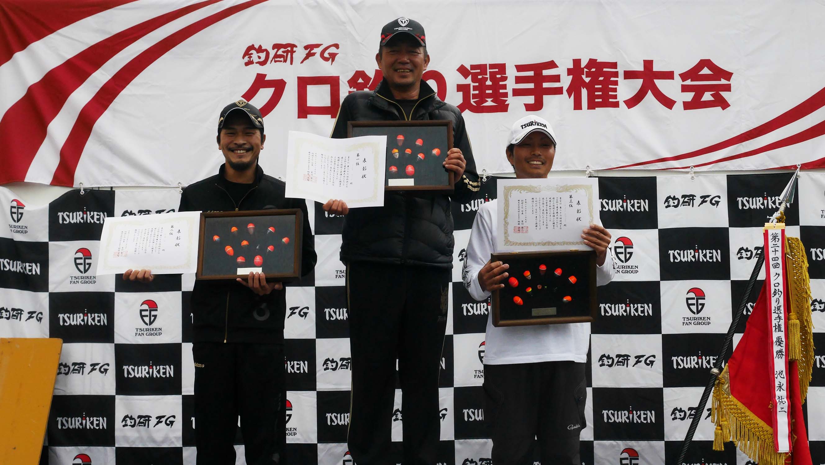 天候不良の中、釣研FG会員たちの奮闘ぶりには感心させられます。また無事故で大会を引っ張った釣研FG本部役員の方々、担当支部として大会に係わるもろもろの段取りなど、大分県支部会員の方々には大変お世話になりました。特に本部横に設けられた暖かいコーヒーの心配りは、雨に打たれた体を心から暖かくすることが出来ました。