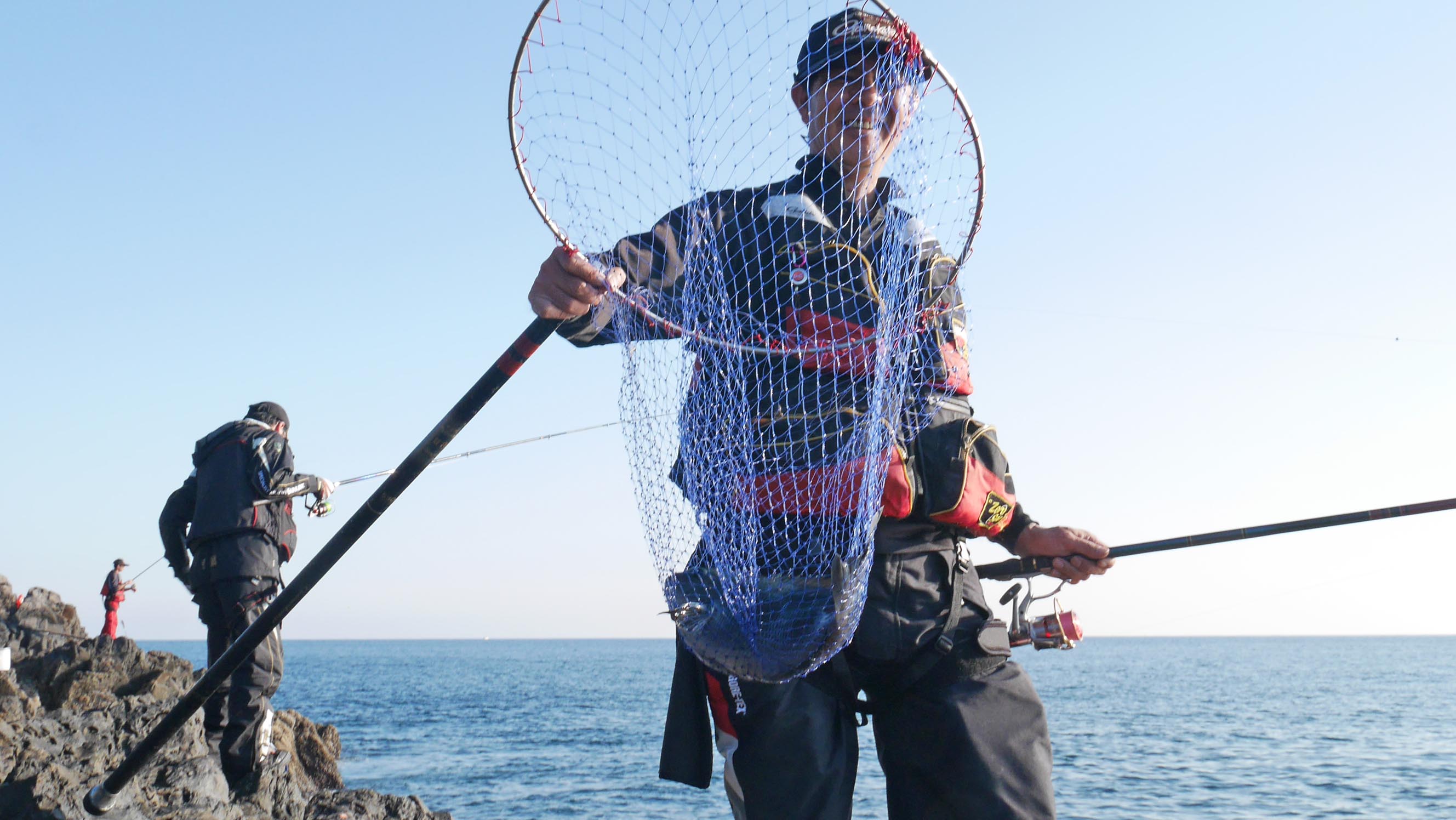 当番瀬での本来の釣りは、ヒーユーマンアカデミーを卒業して、ルミカ・モーリス・サンラインなどで働いている教え子達との釣行予定として当番瀬を押えていました。でも、その中の一人が今回の大会スタッフになったことなどで、卒業生との釣りを延期し、釣研FG東九州支部の会員たちと一緒に、当番瀬へ行く事にしていたのです。