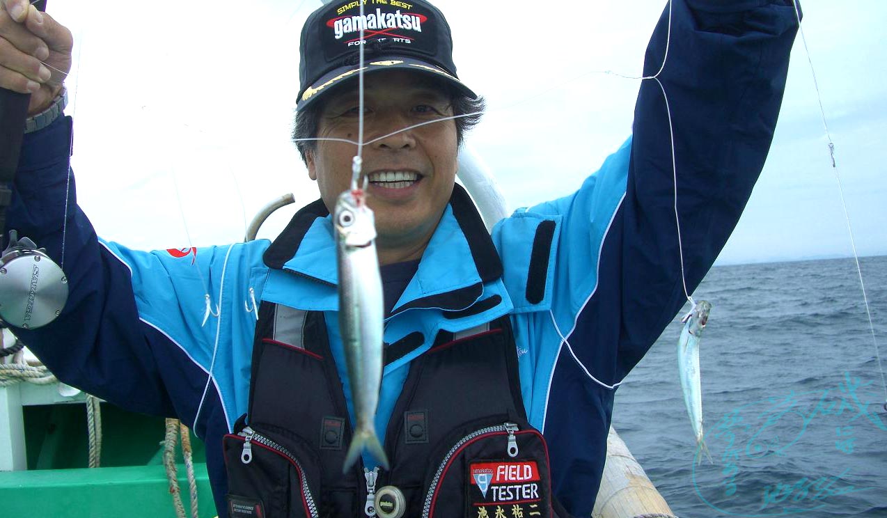 游魚船で玄海島と小呂島の間まで行って、がまかつのサビキ仕掛けのテストでした。