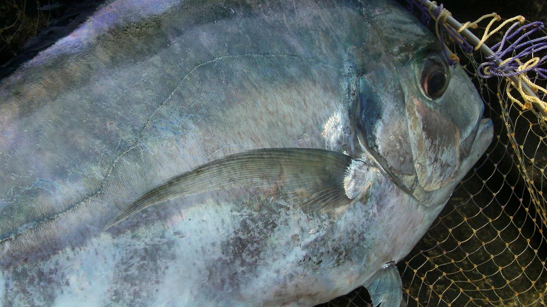 この絵は藤原名人が釣った60cmオーバーのイトヒキアジ・・デカッ!
