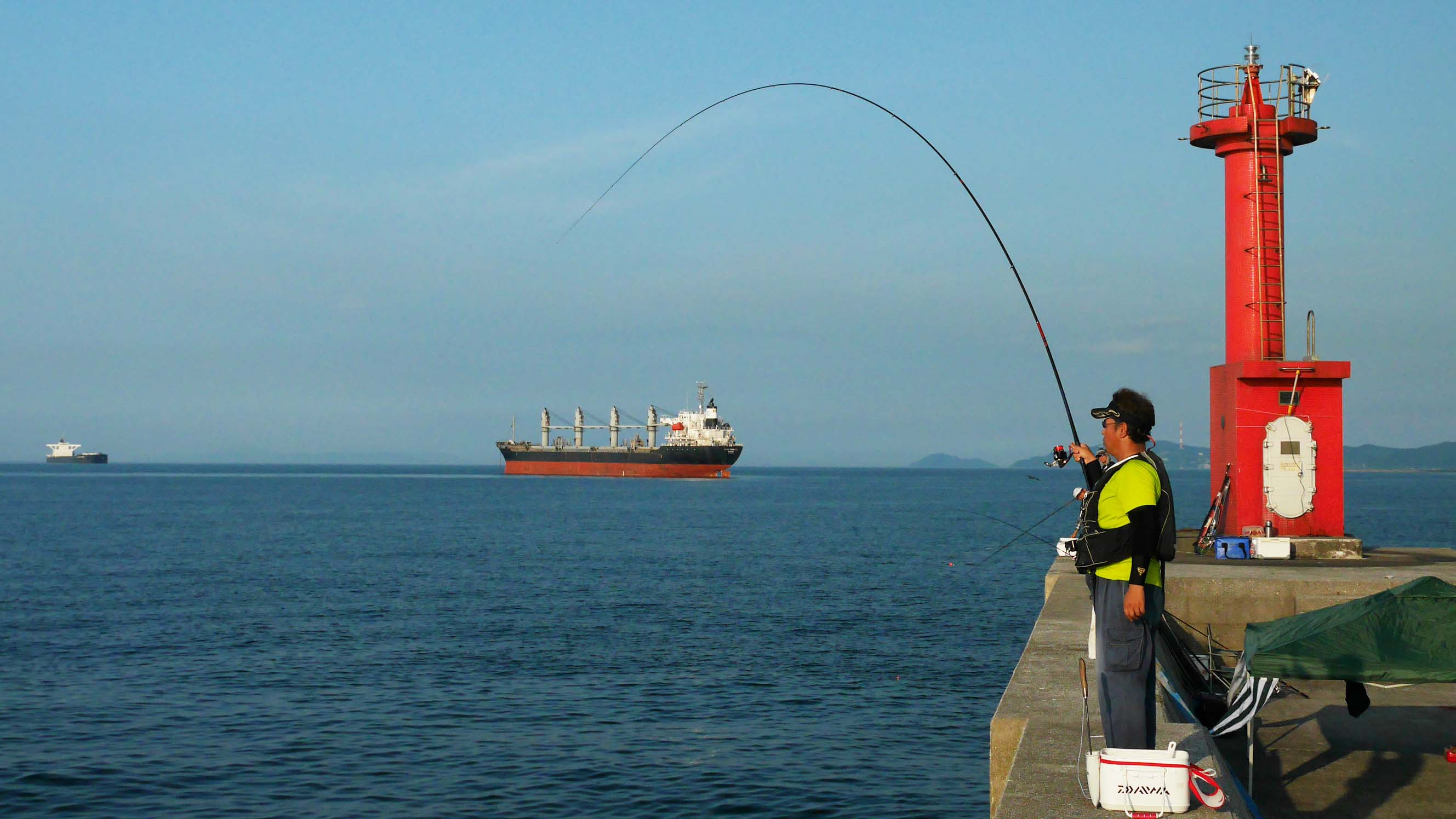 日吉原公共埠頭では、近頃70㎝級のマダイが2枚ほど釣れている情報。暑い夏のチヌとマダイは、サヨリの小型がエサ取りとして接岸するまで、縦横無尽に狙うことが出来ます。ハッチバックやパラソルで日陰を作りながら狙うのがお薦めです。