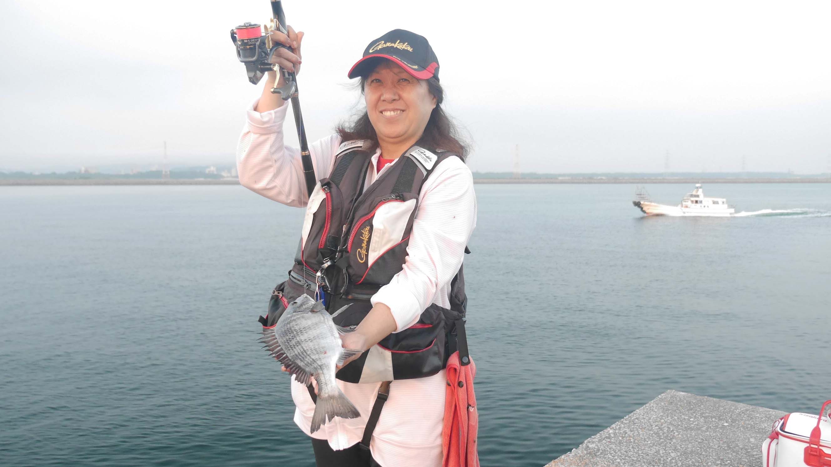 それにしても、二日間の大会期間で裏方の仕事をテキパキとこなし、笑顔で接している彼女。特にリーグ戦での船上や磯での荷物捌きなど、スタッフとしての技量は舌を巻くほどの動きでした。これらは福岡グレ競友会で鍛え抜かれた技なのでしょうね。