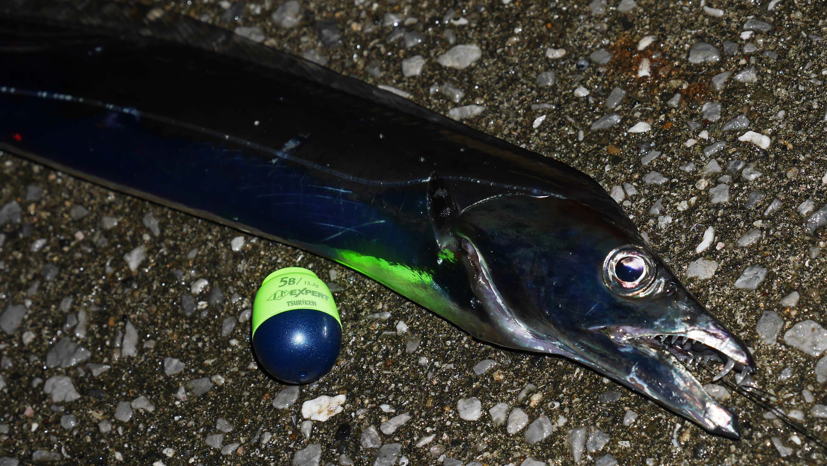 今回はアジ用のマキエが余っていたので、マキエを打ち続けたのが功を奏した様です。理由はマキエを追って多数のアジが泳ぎ回るので、採餌音やアジの泳ぐ振動が常に出るからです。これでタチウオが集まってくる確率もアップして釣果に繋がります。