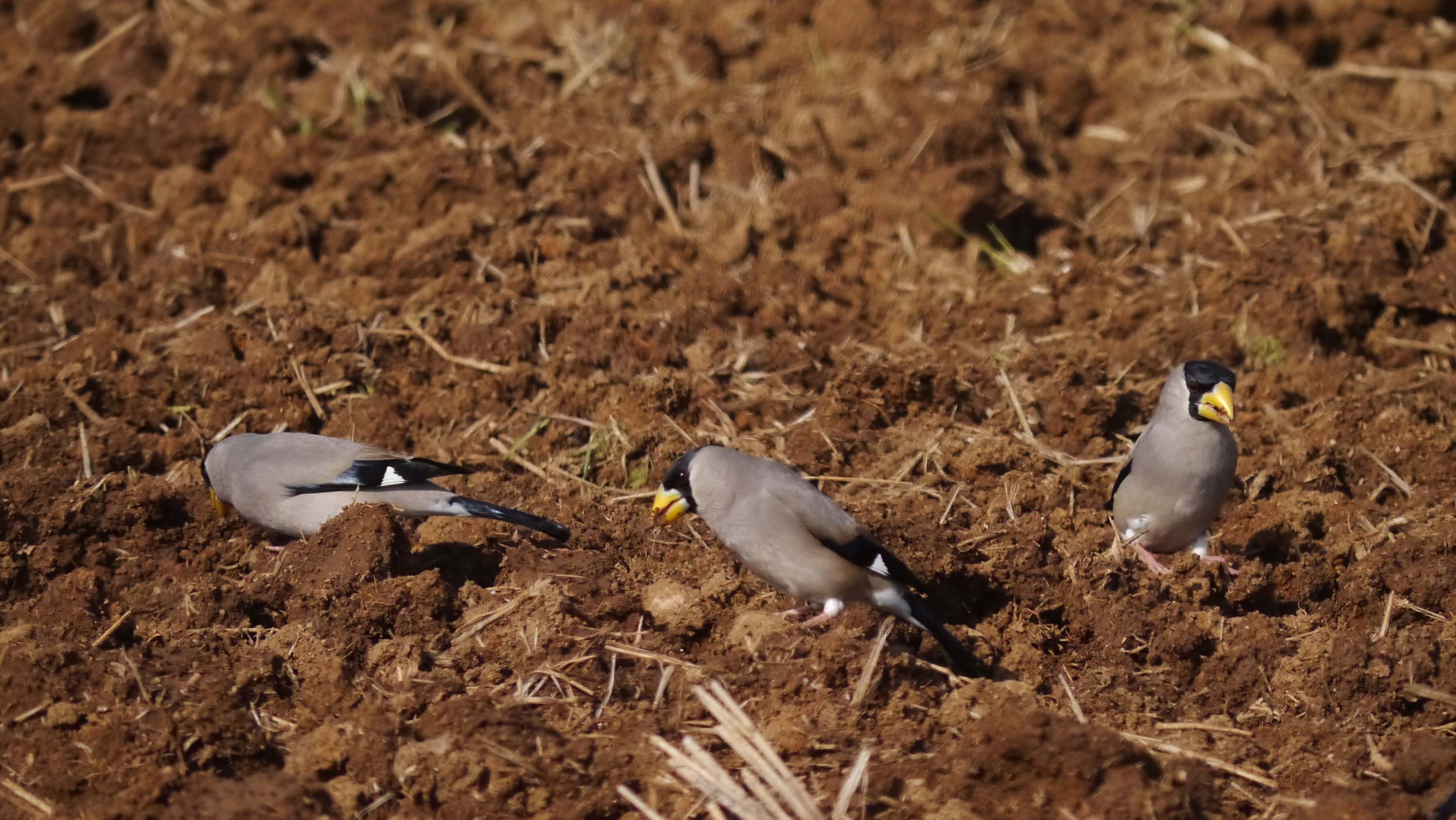 イカルは群れる事が多いけど、シメは単独行動が多い小鳥でたまに群れ。