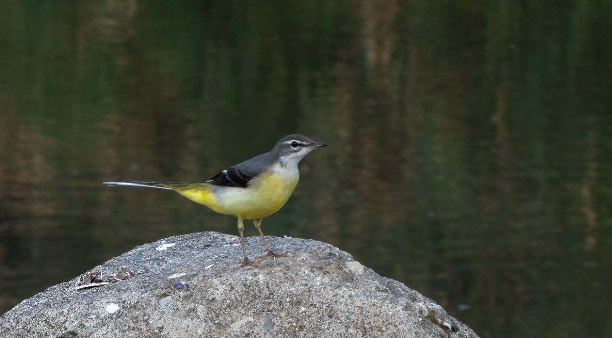 川の消波ブロックに来るキセキレイ
