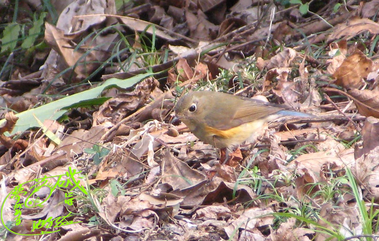 音の発生源はイノシシではありません、シロハラです。薄暗い薮の下で、一心不乱に落ち葉を掻き分けてエサを探しています。