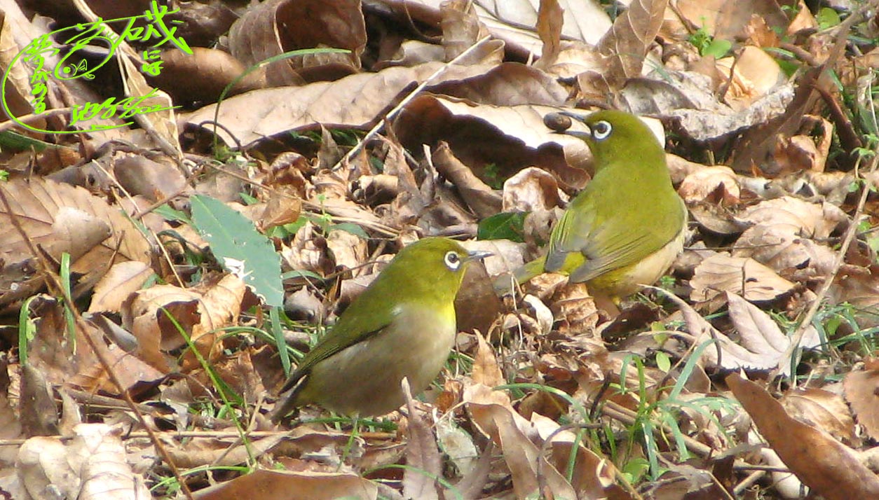 ルリビタキと同じ、落ちた木の実をついばむメジロ。入れ替わり立ち替わりやってきます。腹を満たすにはこちらでしょうね(^^♪
