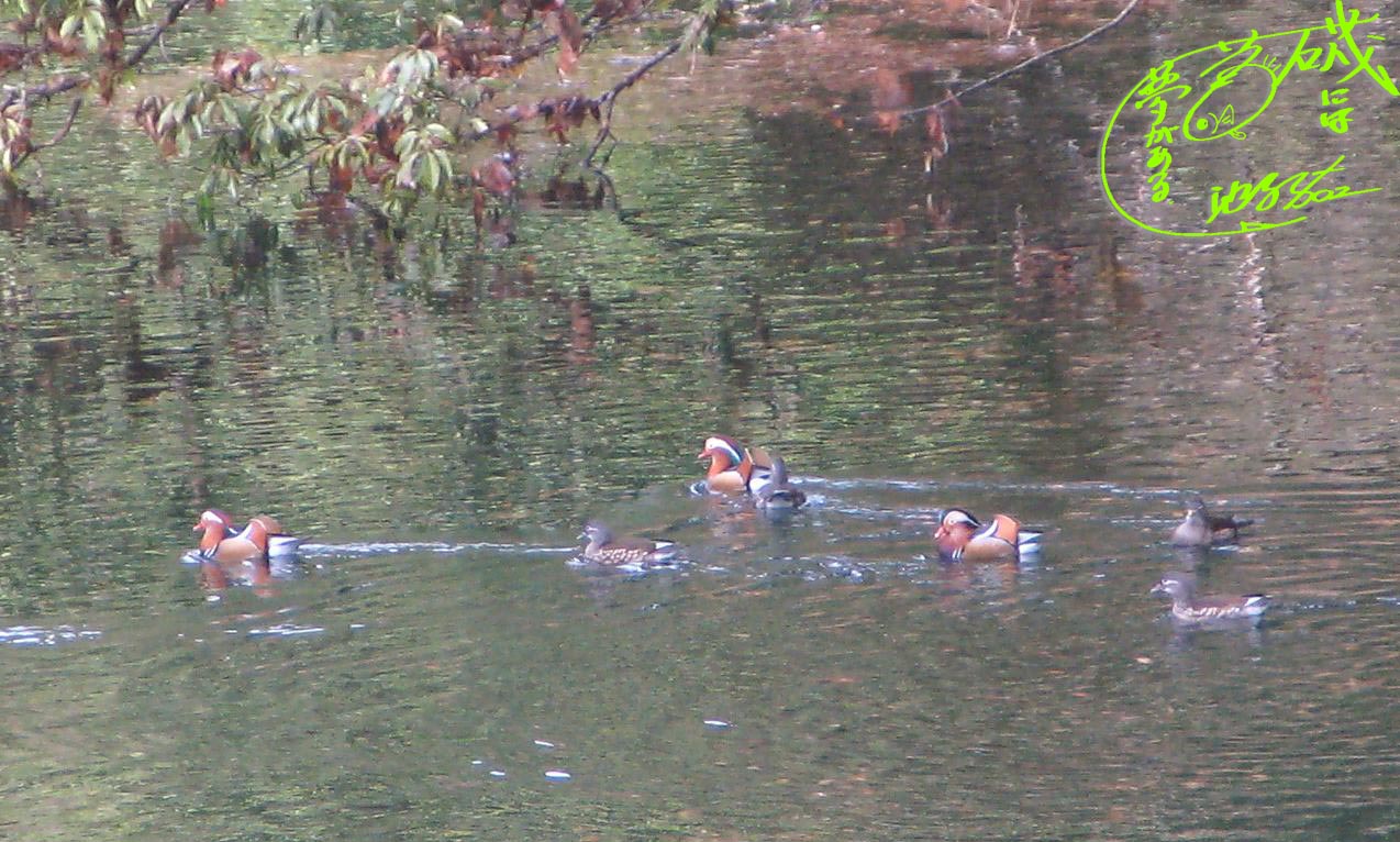 今回は猟師と猟銃の音で、ほとんどのオシドリが逃げ去ってしまったけど、数羽だけが居残りました。