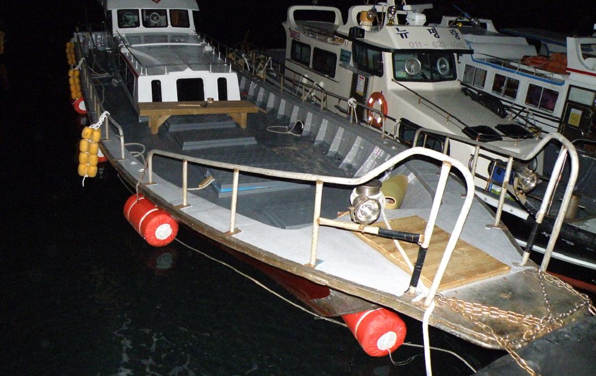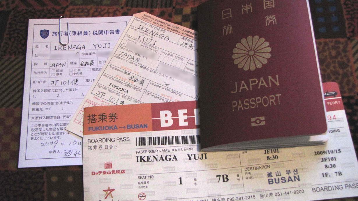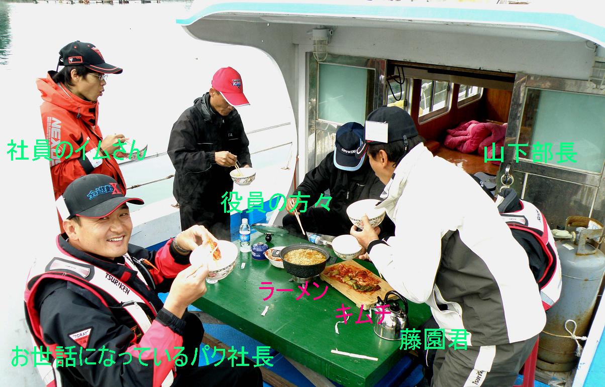 開催地が韓国の麗水(ヨス)なので、一番近い釜山へと、10月15日の一便船のビートル?に乗って博多港から出発です。メンバーは田中釣心名人と、釣研テスターの行徳秀美君、釣研社員のミスターM君と私です。
