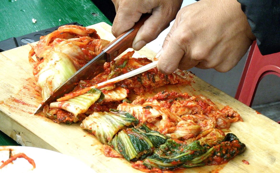 役員の人が島の人に頼んで、隣の集落からラーメンを買ってもらいました。ついでに白菜キムチを島の人から調達です。朝飯は3時30分に食べているので、10時前には腹が減っているのです。