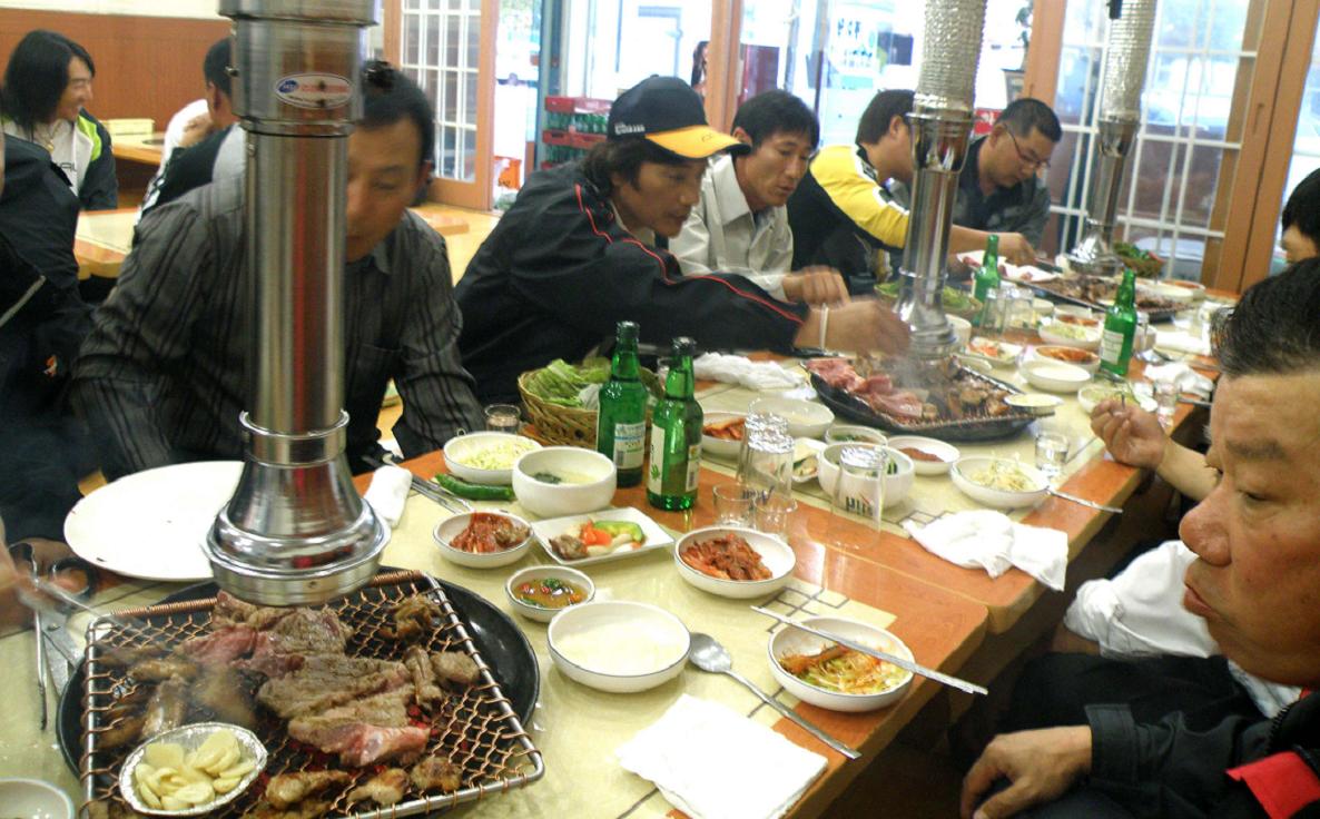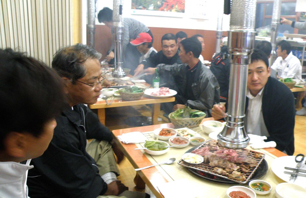 大会が終わったら、日本では通常は解散しますが、コリアオープンの最後は表彰台に上がったチームが皆さんに焼肉を振舞います。今回は優勝チームがW50,000・準優勝チームがW30,000・3位チームはW20,000の割合で、豚の焼肉を参加者たちにご馳走してくれました。