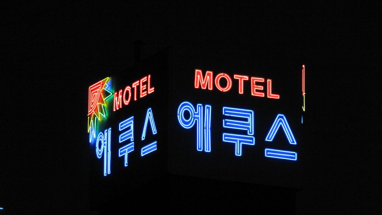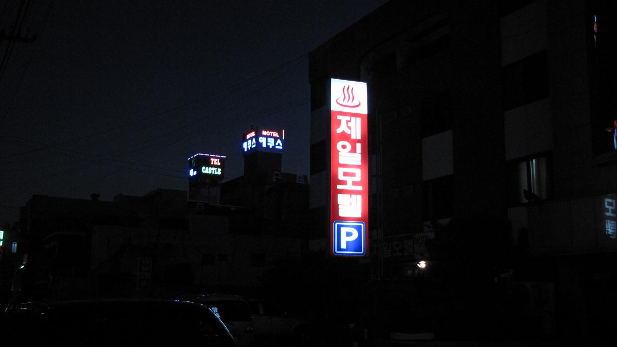 食事へ行く前に、宿泊した所から周囲のモーテルを写してみました。韓国のモーテルはビジネスマンが使うし、家族連れも使います。そしてカップルたちも使うといっていました。