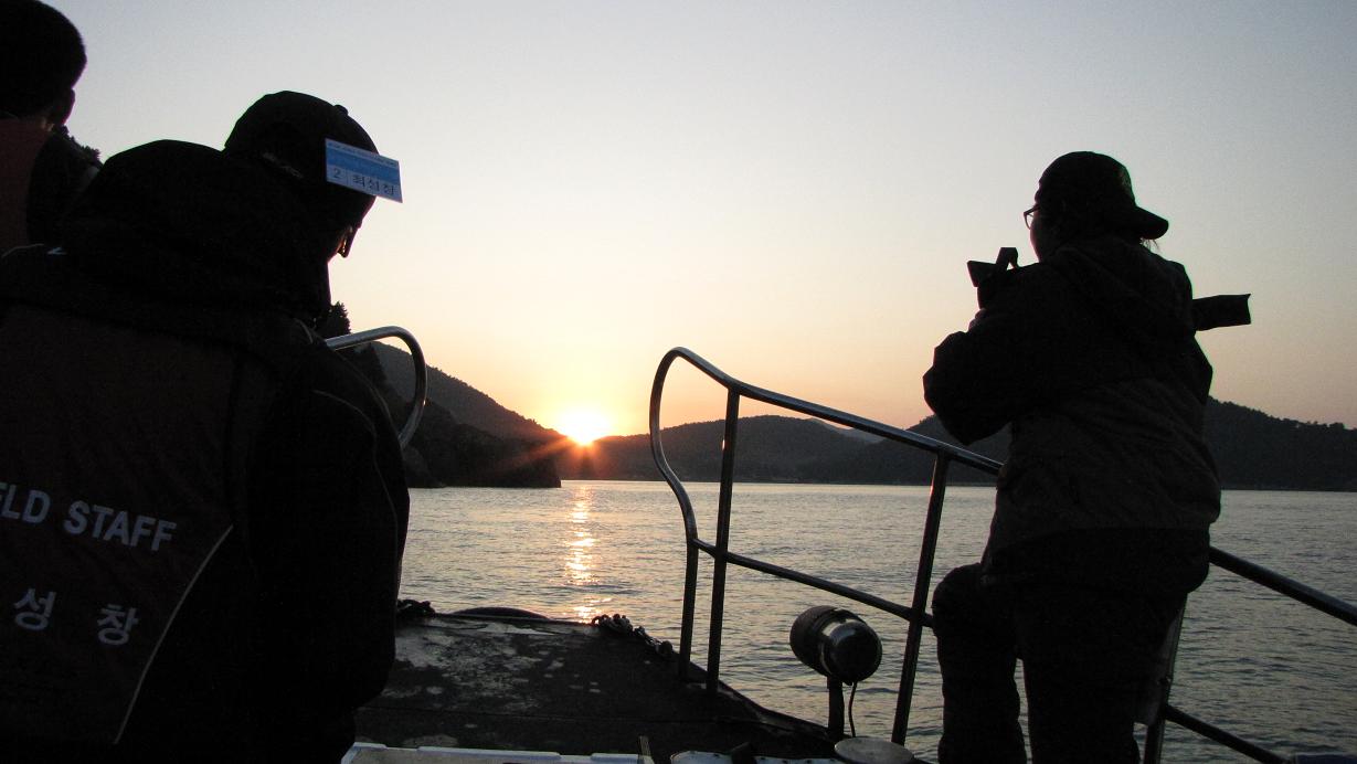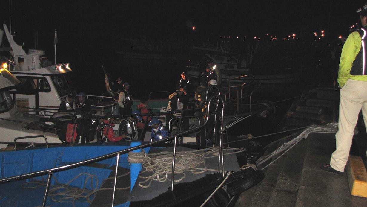 私たちは決勝戦を観戦する為、選手と同じ時間に港を出ました。決勝リーグの3試合も観戦したのは、田中名人をはじめとする少数の方々で、私たちは島の港に停泊して船でゆっくりとくつろぎます。