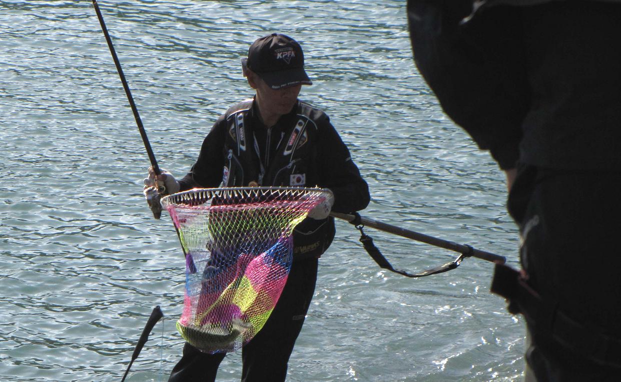 釣果は3人が1匹ずつ釣って、二人が釣ったチームが優勝しました。準優勝はカンさんのチームで、ラストを務めたカンさんのチヌが、韓国釣研FGチームを準優勝に導いたのです。
