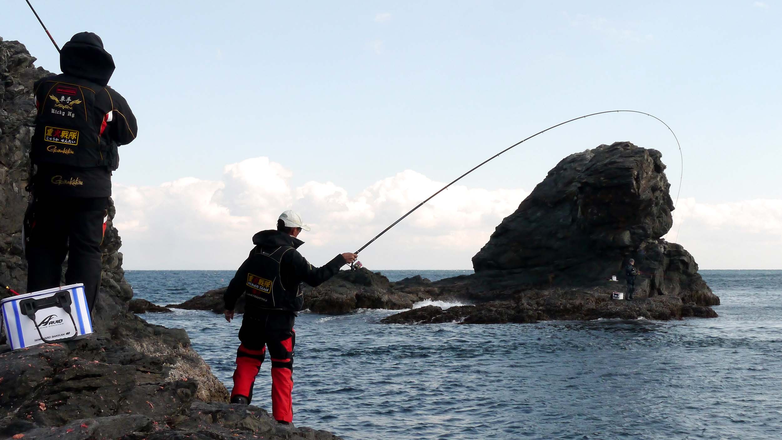 今回、本流釣りを体験した人は初めてだったので、本流釣りのマキエの仕方が分らなくて当然です。“千畳敷”で釣った人は香港の方で、チヌ釣りがメインの磯釣りを数多くしており、グレ釣りは未経験者みたいな感じだから致し方ありません。