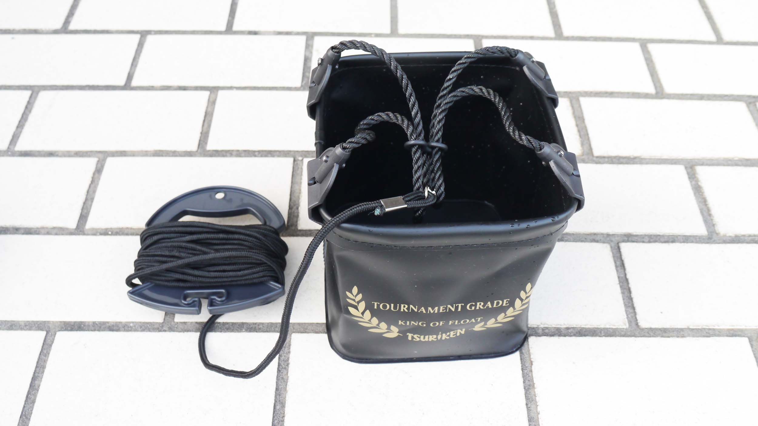 釣研の水汲みバケツは4本支持、2本支持より断然使い勝手が良い