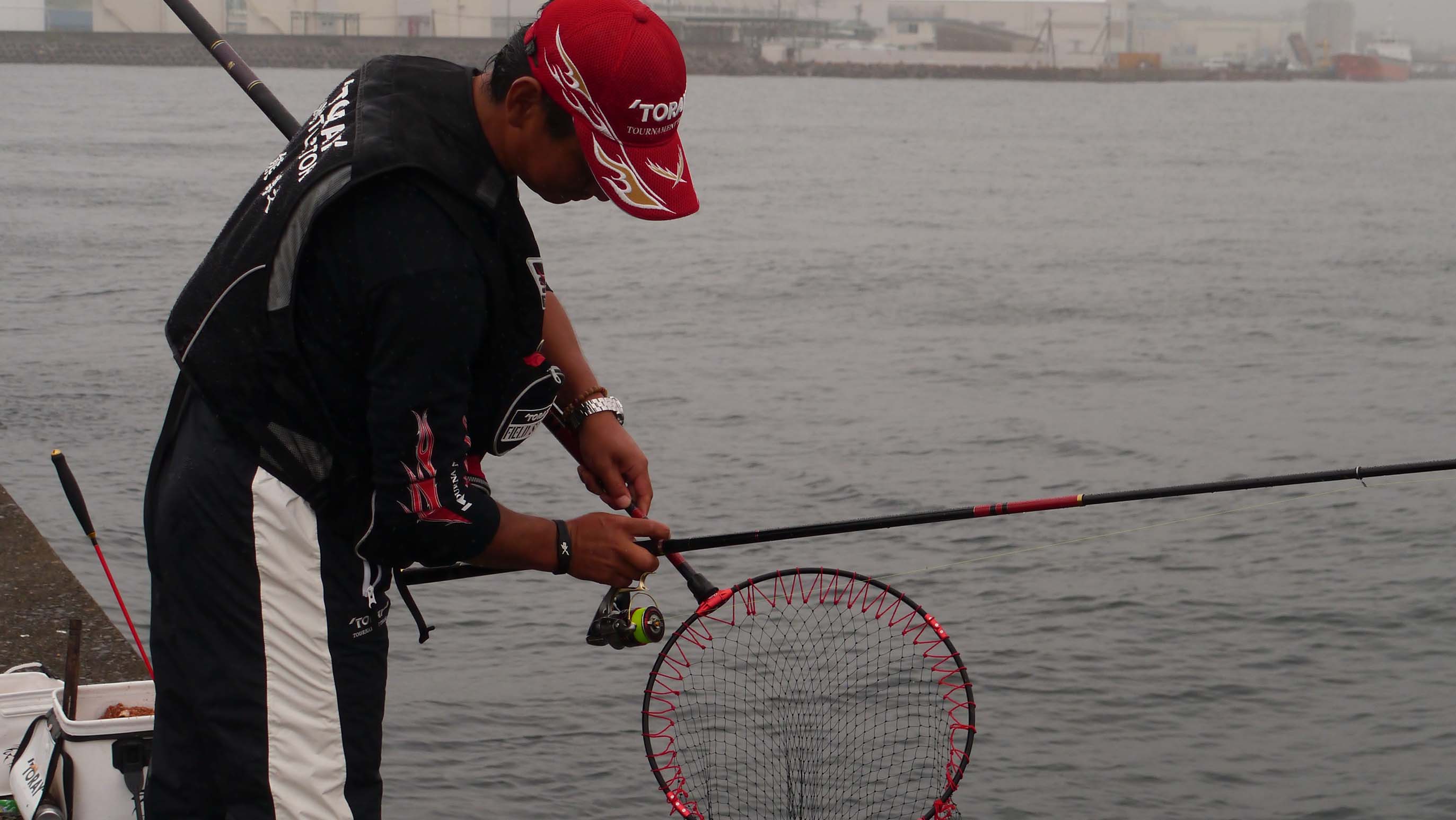 磯釣りなどでは、タモでの取り込みは必須です。