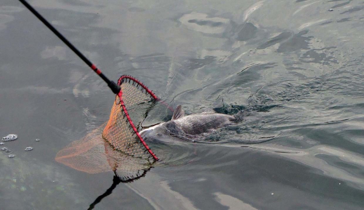 フカセ釣りで、流していた仕掛けを回収する時に、ウキの重量を利用して仕掛けをキャッチします。具体的にはウキ直下のハリスを掴み、手の平の中でスライドさせ、ハリが手に到達するというやり方です。