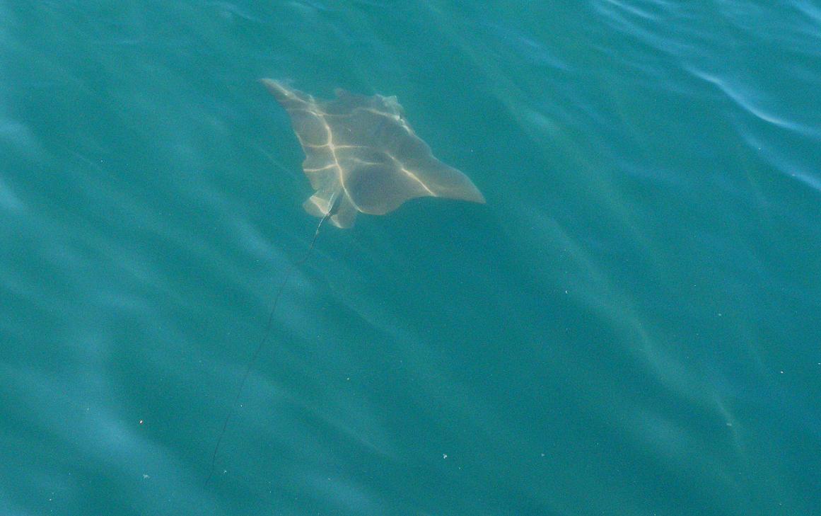 今日のトビエイは最大30kg級でしょう、羽?を広げると1.5m以上はあるでしょうか?通常は20kg級を数多く見かけますが、今日は1.5kgくらいの赤ちゃんトビエイも泳いでいました。居るのは10月一杯かな・・?