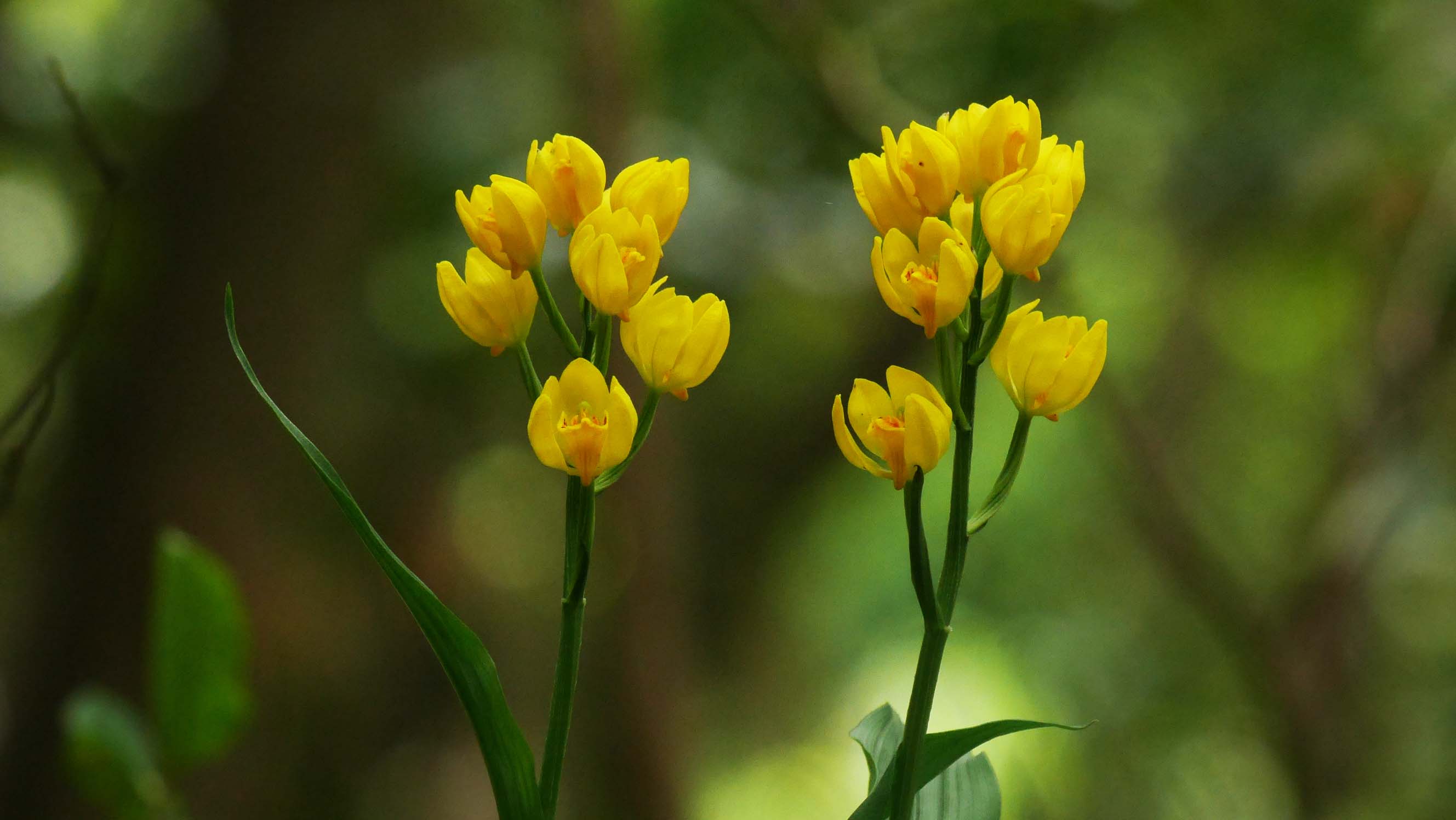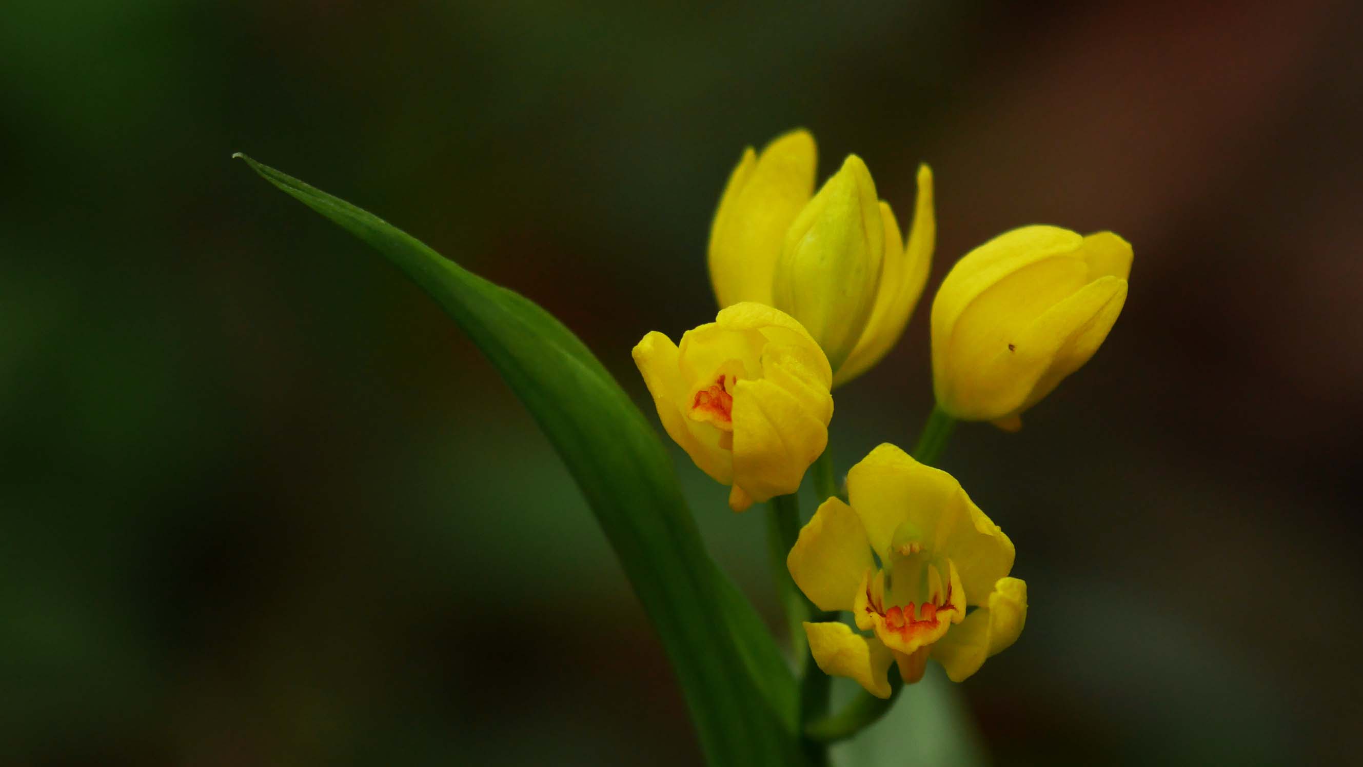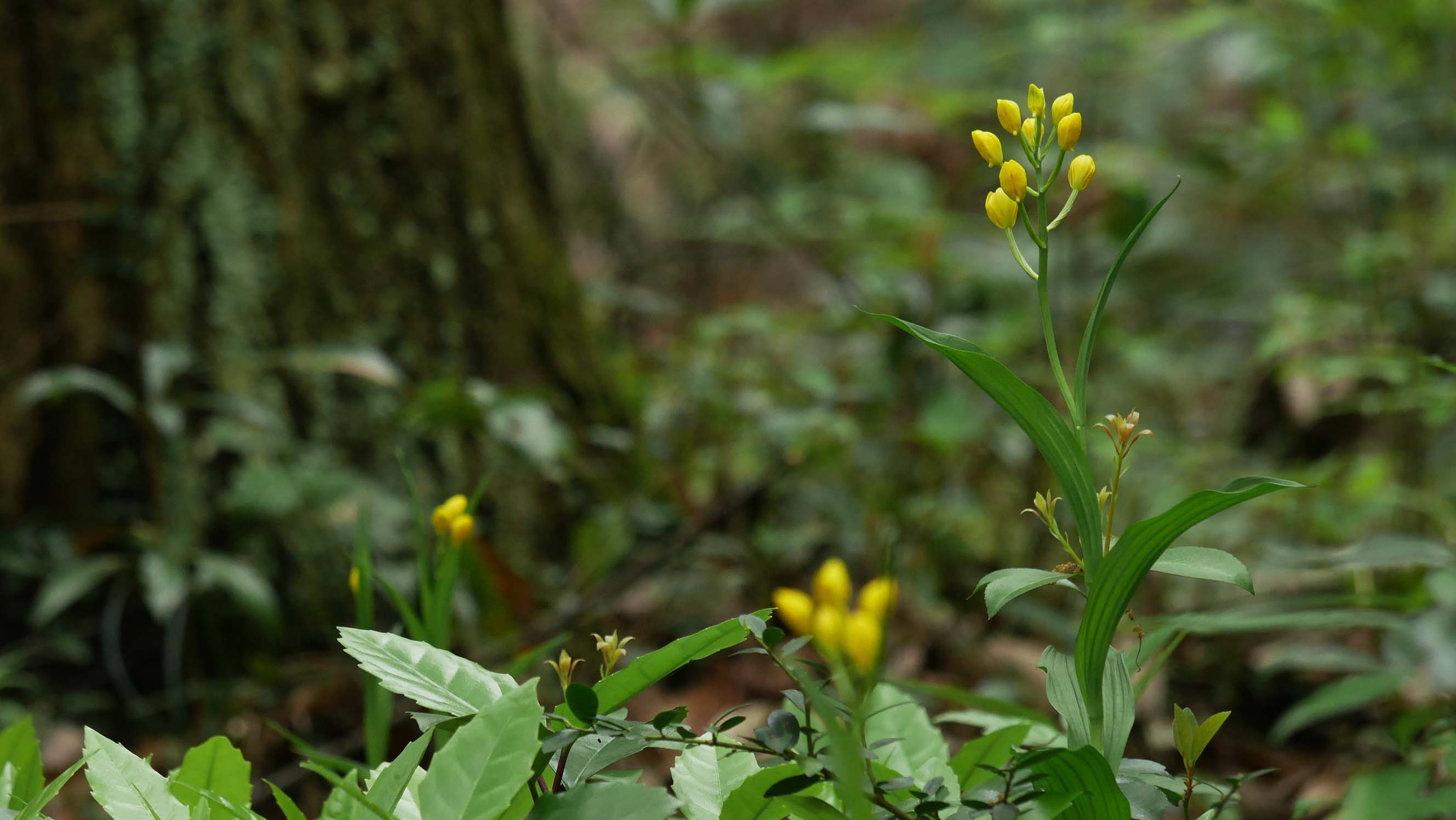 すると、いつもの場所のキンランが少しだけ咲いています。この場所だけでも6株のキンランがあり、撮影をしていると、谷の方からサンコウチョウの鳴き声が聞こえ始めました。・・・何とも言えない至福の時間を独り占めです。