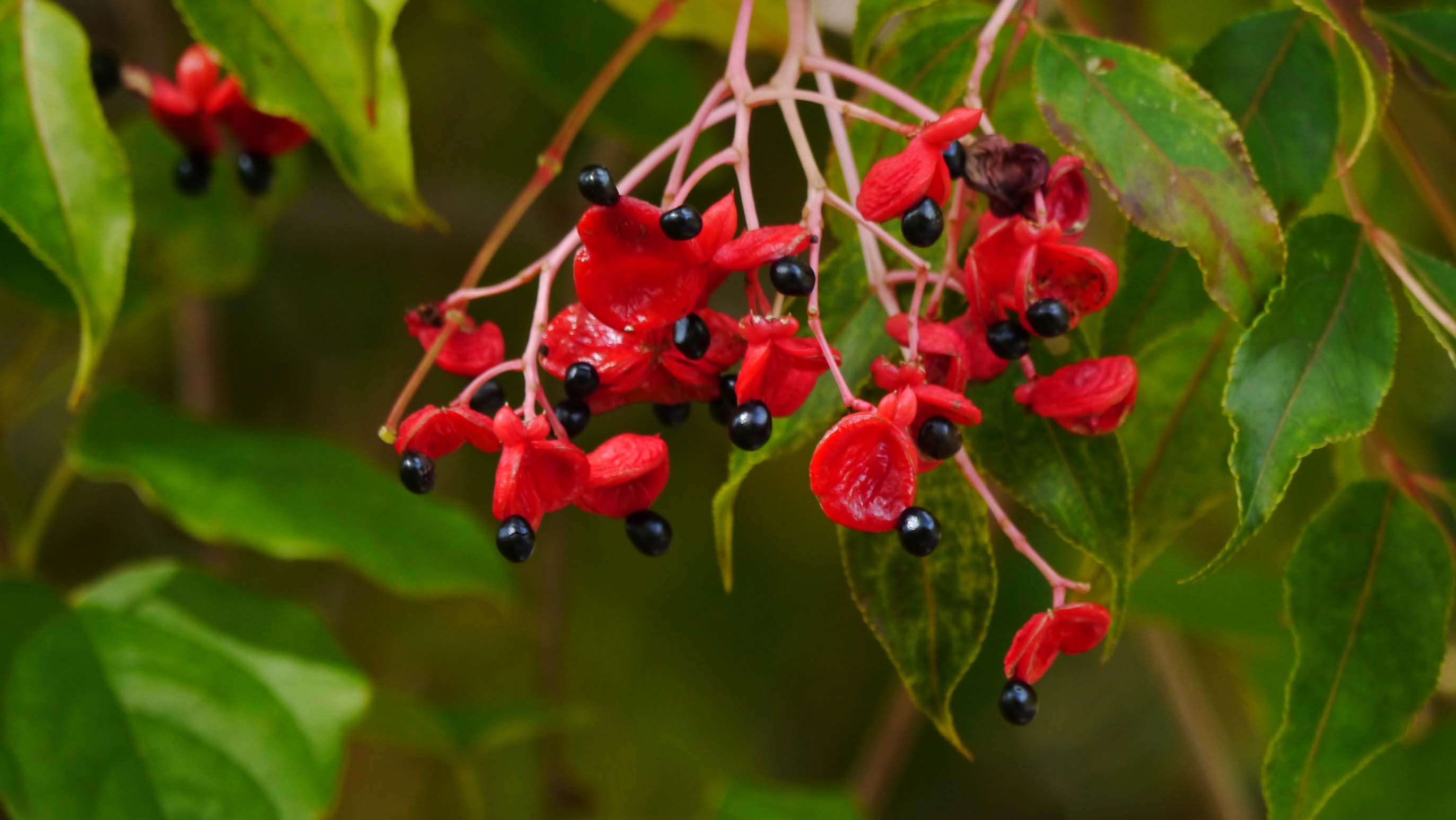 直ぐ近くには赤い花弁に黒い実を覗かせているゴンズイ。