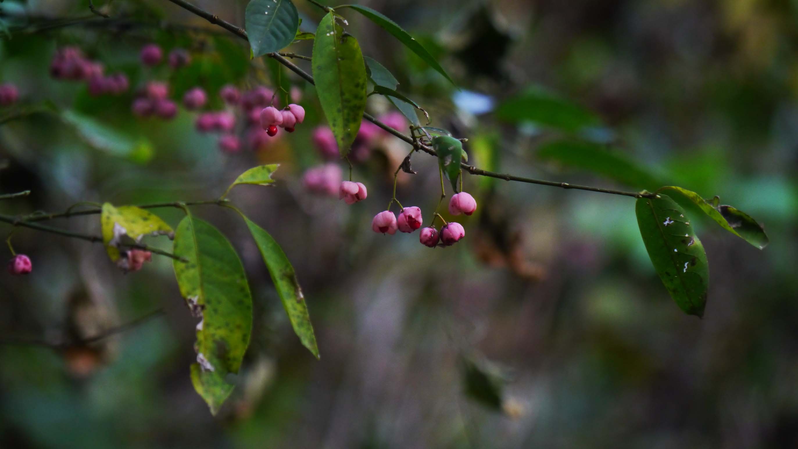 こちらはゴンズイの実で、山の中で赤がとても映えます
