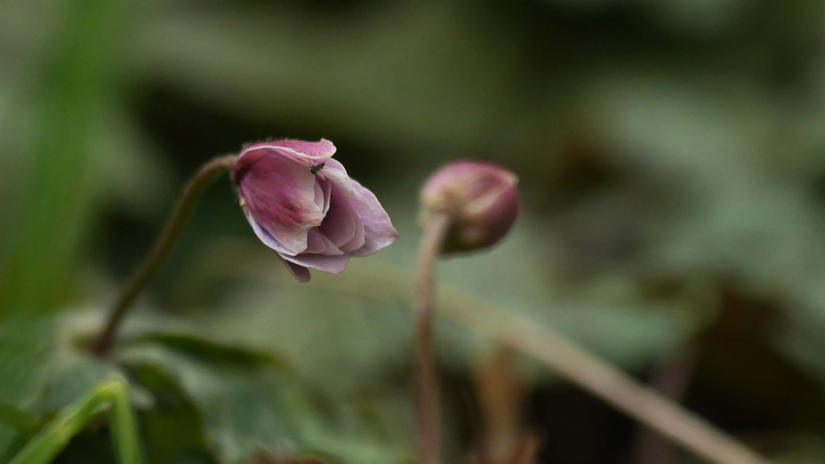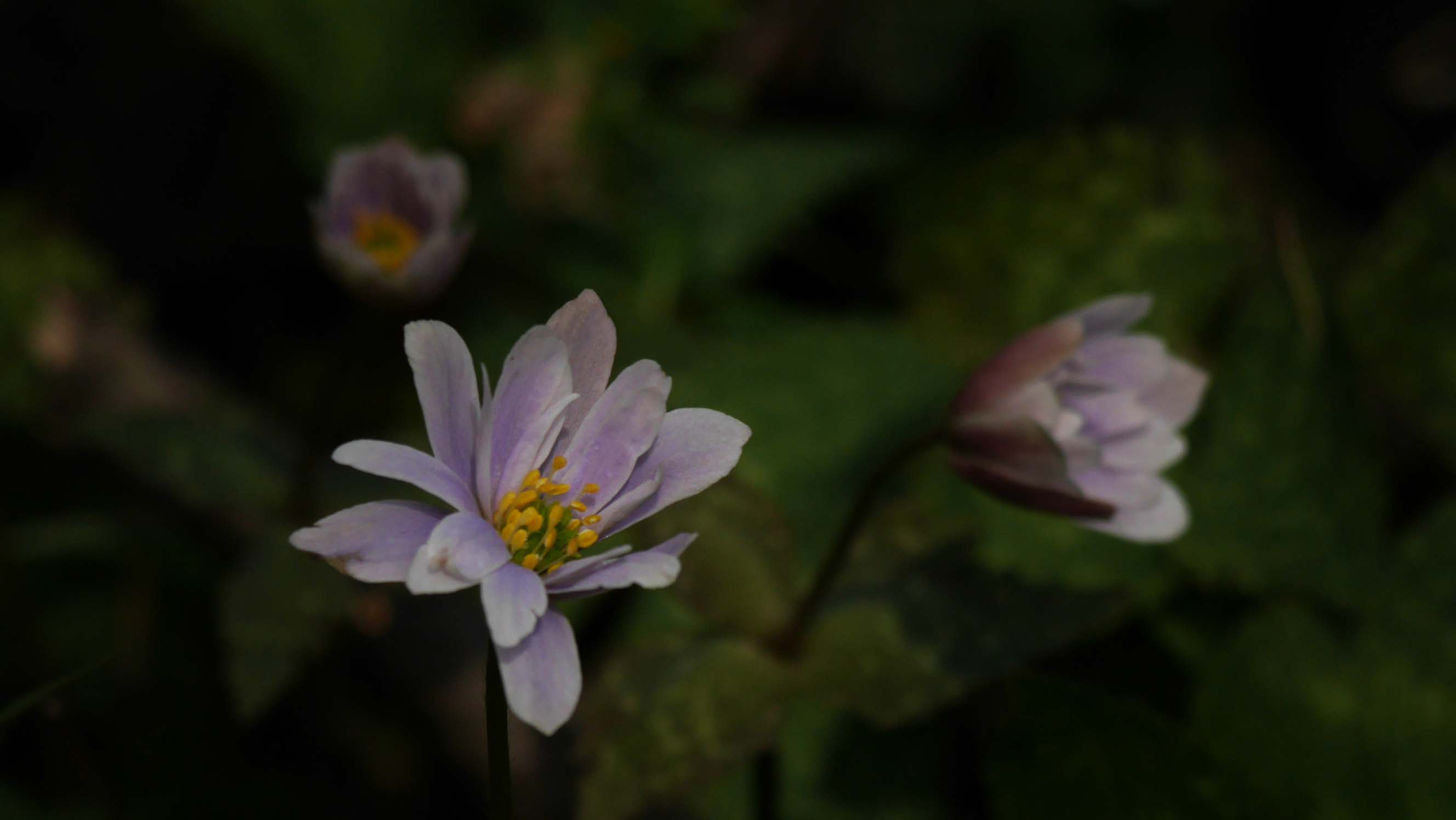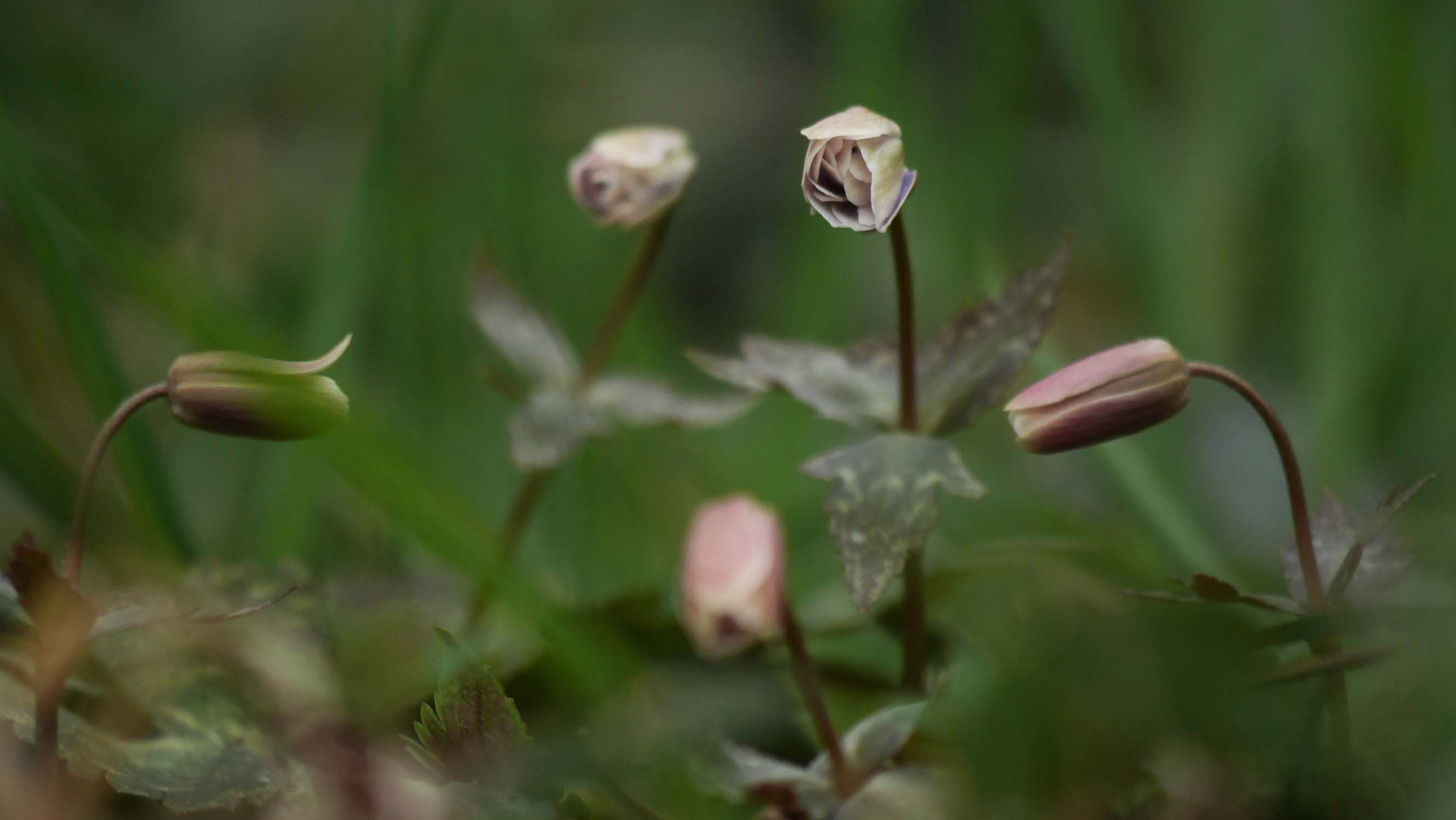 今年のユキワリイチゲ、いつもの群生地の花芽は少ないです。