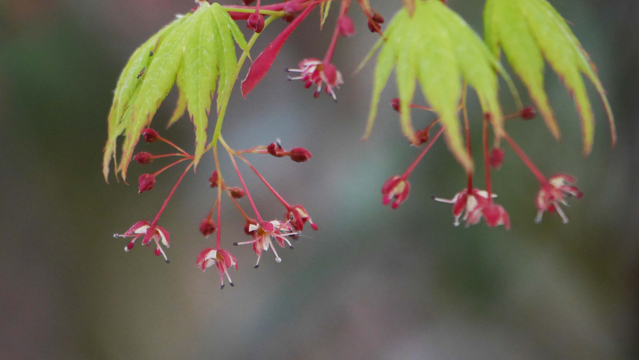 いつもの山を散策、この場所は紅葉の多い所で、イロハモミジの小さな花も咲いていました。下を良く見るとアケボノスミレも所々に咲いていました。