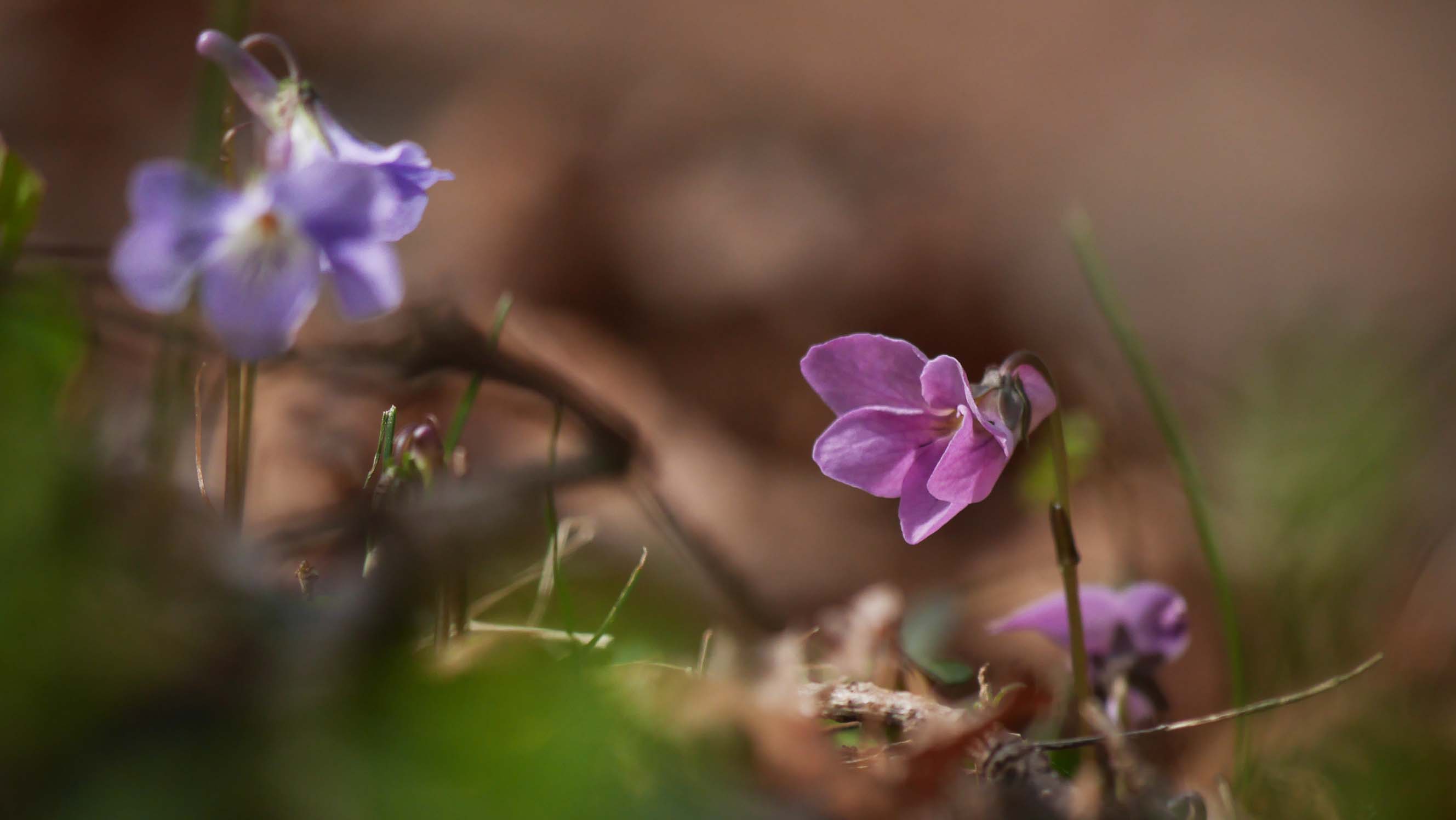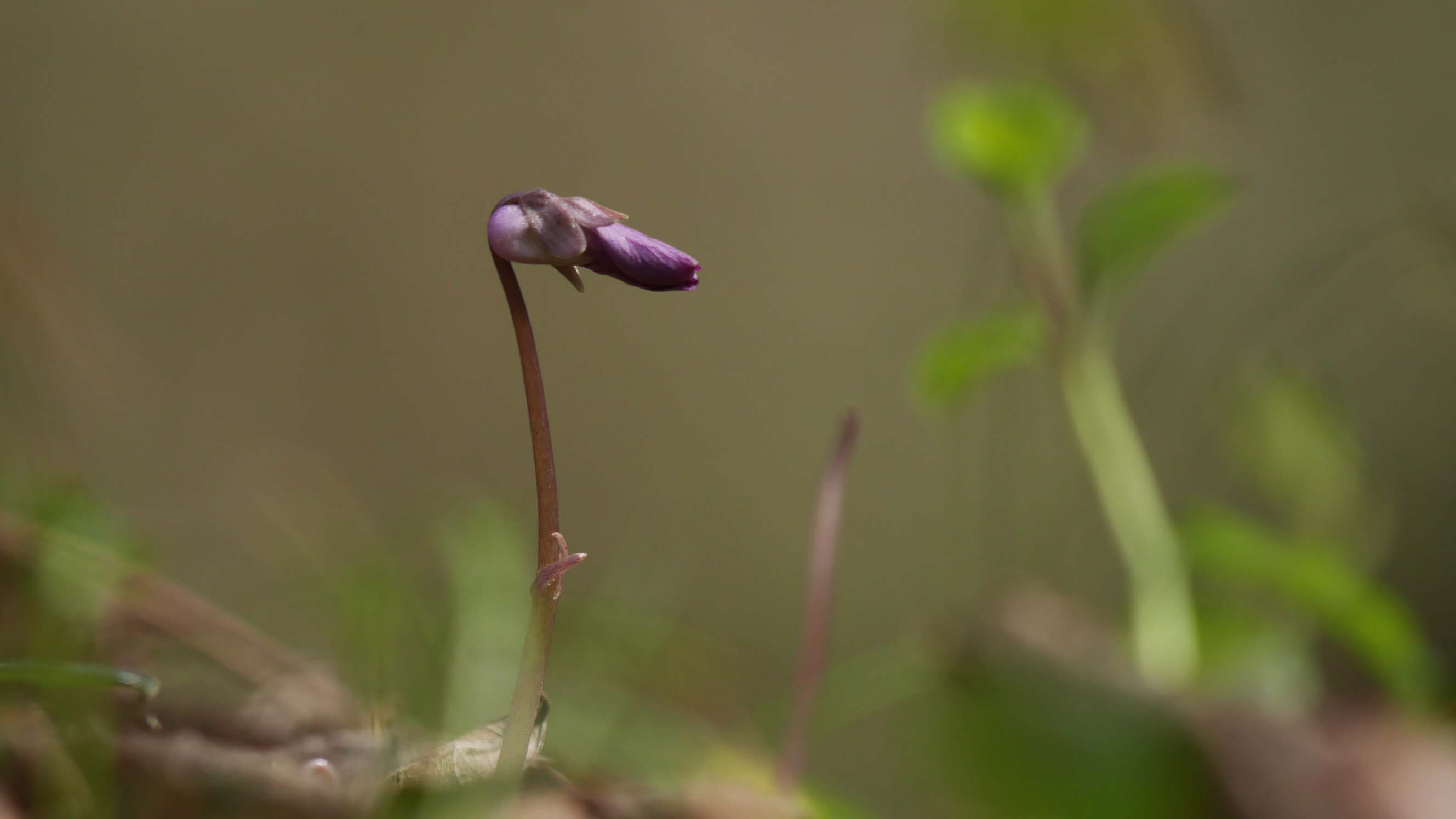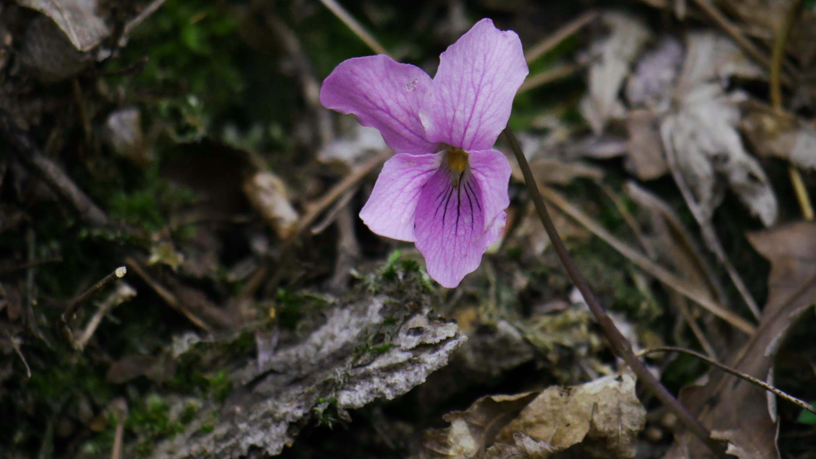 アケボノスミレは他のスミレよりピンク色が強く、葉っぱが出るのは花が咲いた後からなので、このスミレは花茎と花だけを見る事が多いです。