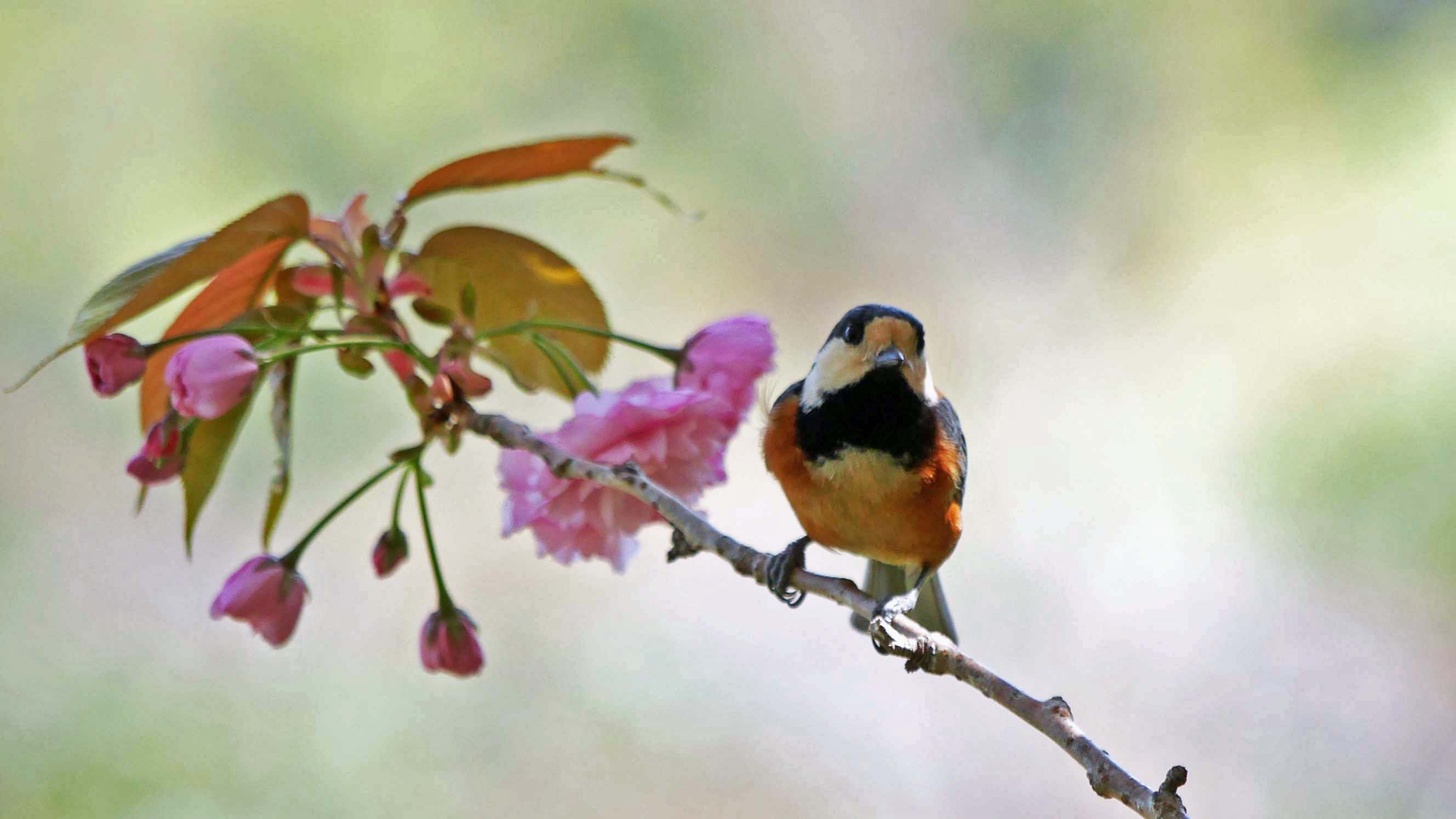 小鳥と一緒に写すと、綺麗な花が更に生きてきます。