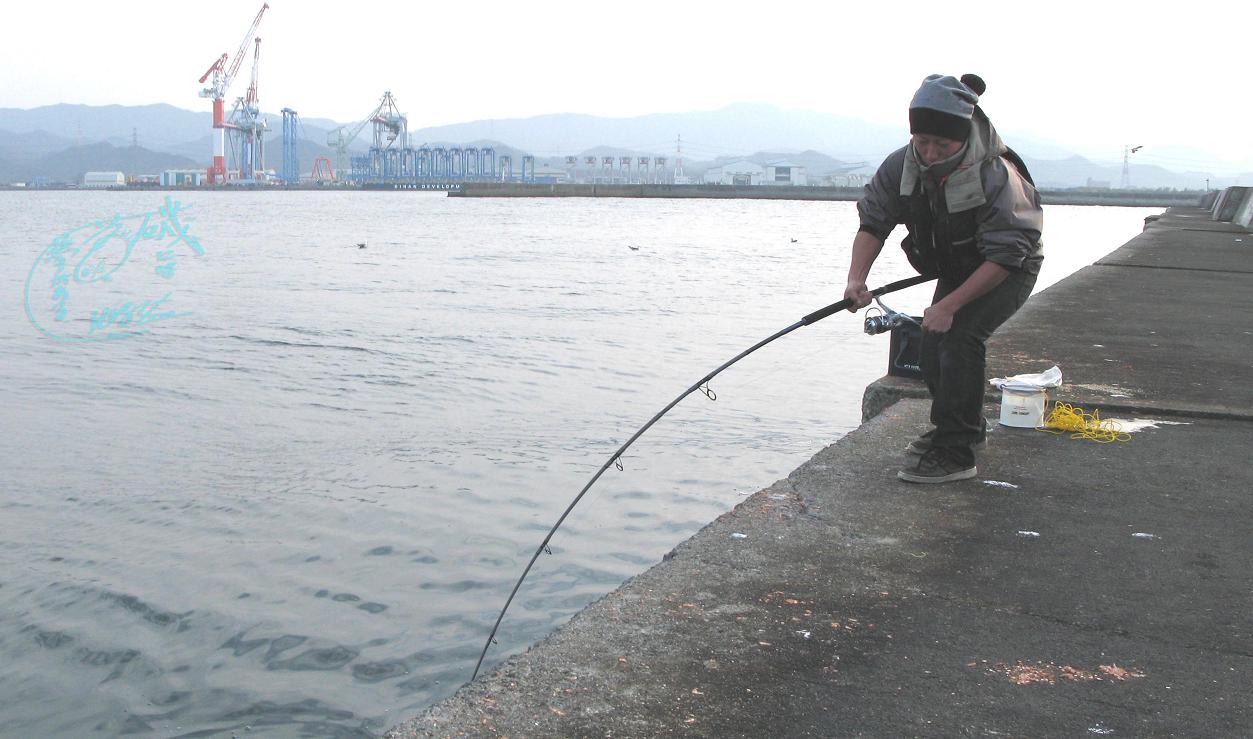 場所は坂の市(さかのいち)沖の、一文字波止群の中から、北西の風に弱い“沖の一文字”を選びました。今日の気圧配置は西高東低が緩んで、小春日和の穏やかな天気だから釣りが出来るのです。