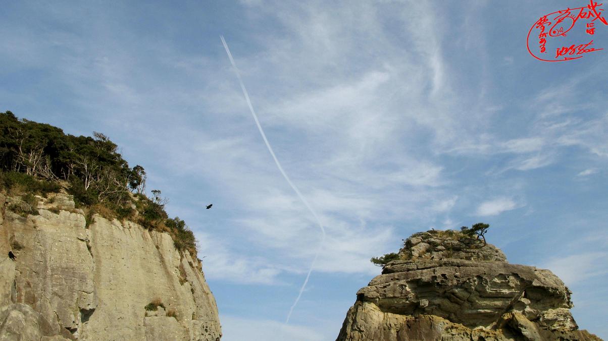 絵は五島上空で針路を変える飛行機です。・・・カラスは何羽居るかな?