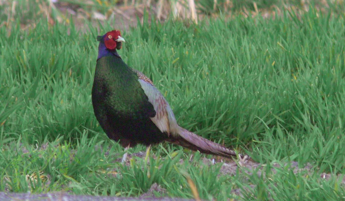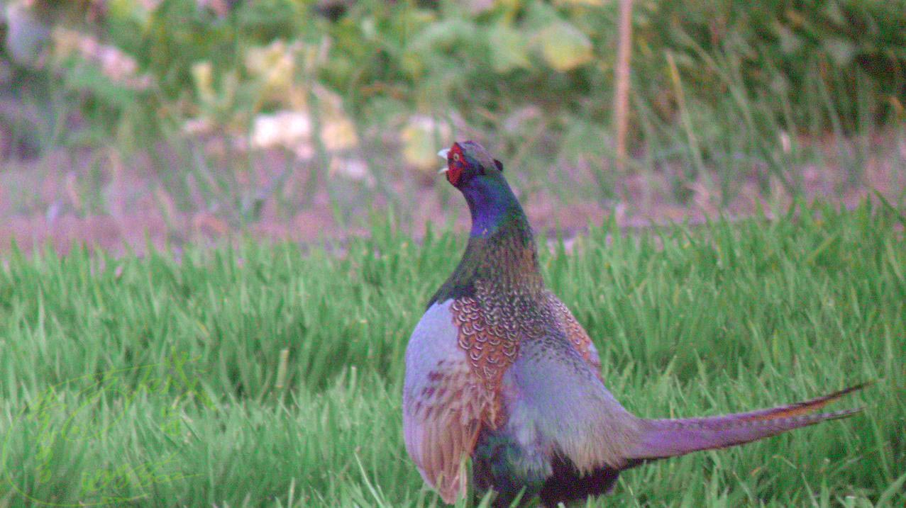 『ケーンケン』この♂は尾羽で身体を支えずに鳴いていました。