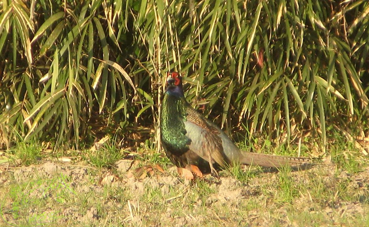 薮の中から鳴き声が聞こえます。やがて姿を現しました。やはり綺麗な♂のキジです。この辺りを縄張りにしているのでしょう。朝一は巡り会えるチャンスが大きい様です(^^♪