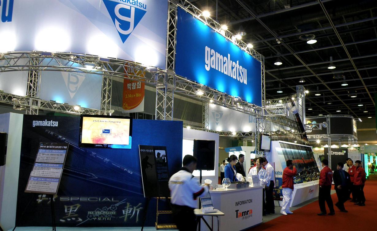 昨年お世話になった、がまかつブース。今回は2階の会場でした