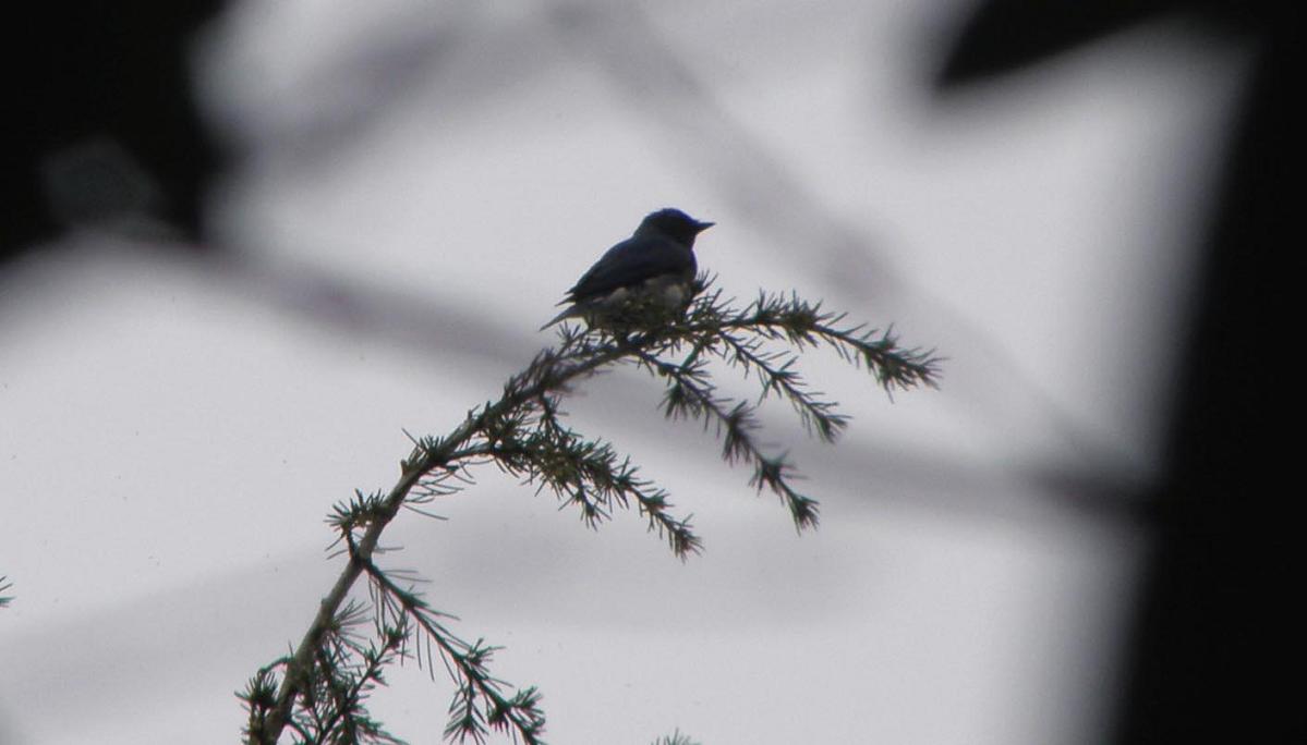 オオルリを大きく撮りたいのですが、木が高い。下から見上げると青が出ないし・・