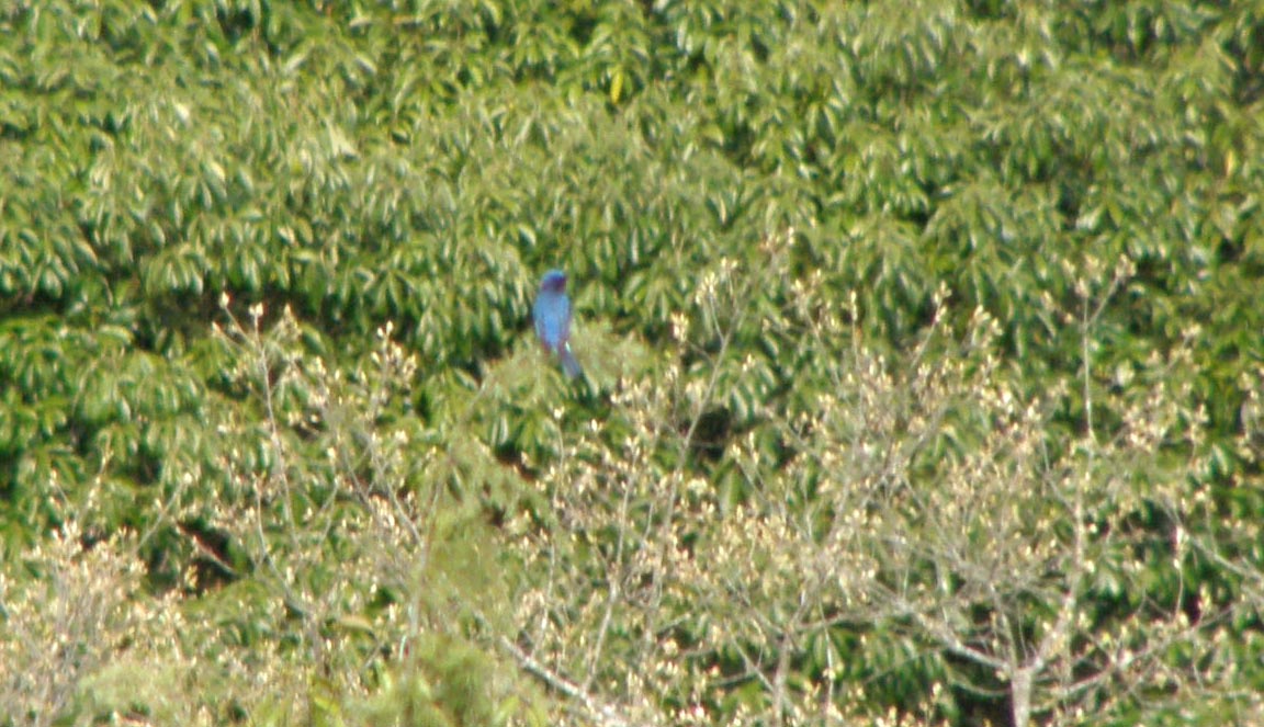 今日は、モミの木を見下ろすポイントに行ってきました。双眼鏡で場所を探していると、いました。いました(^^) 真っ青な青い鳥が。。