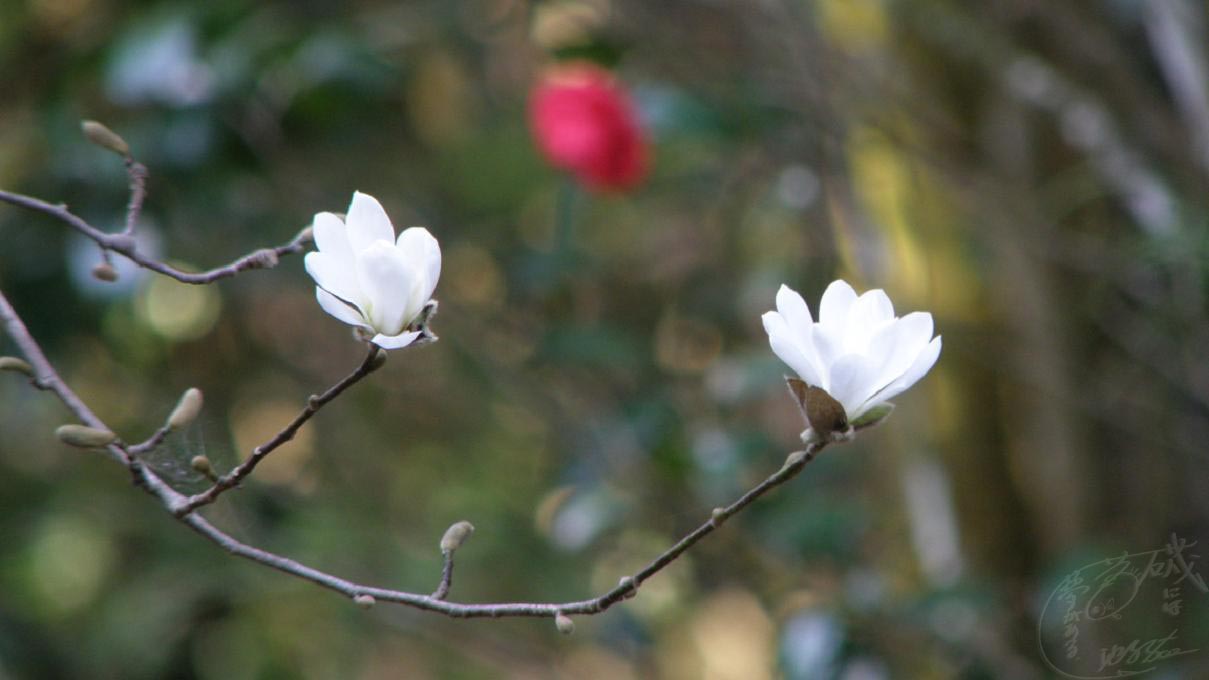 コブシとツバキです。少し遅いけど綺麗な花を付けていました。
