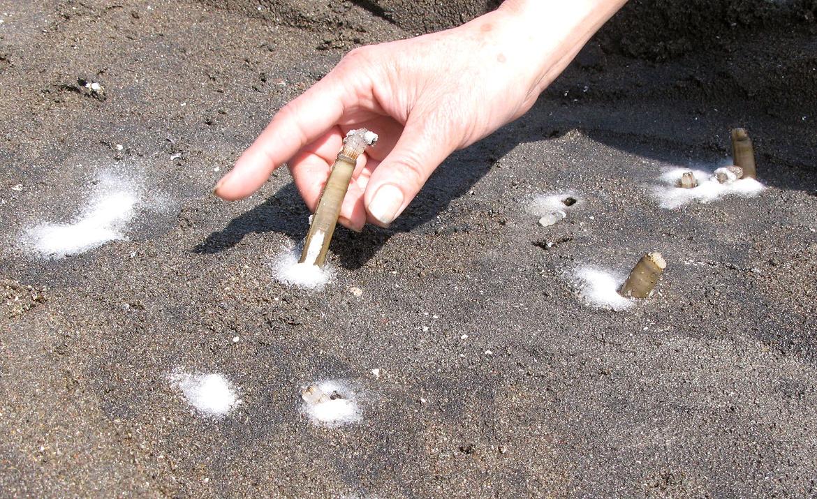 仲間達は全員で17名、それぞれが思い思いに貝を掘っているのですが、なかなか見つける事が出来ません。昨年に比べると少ない感じです。