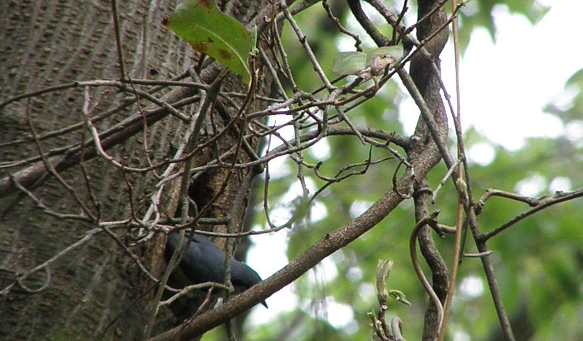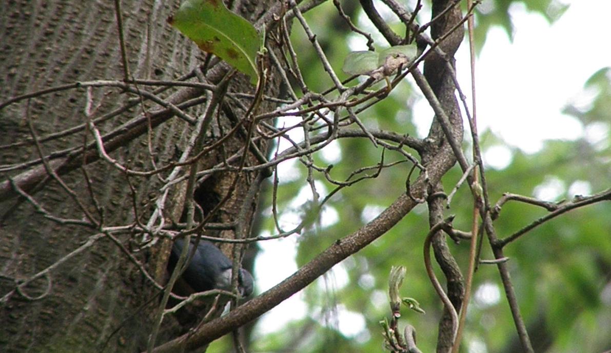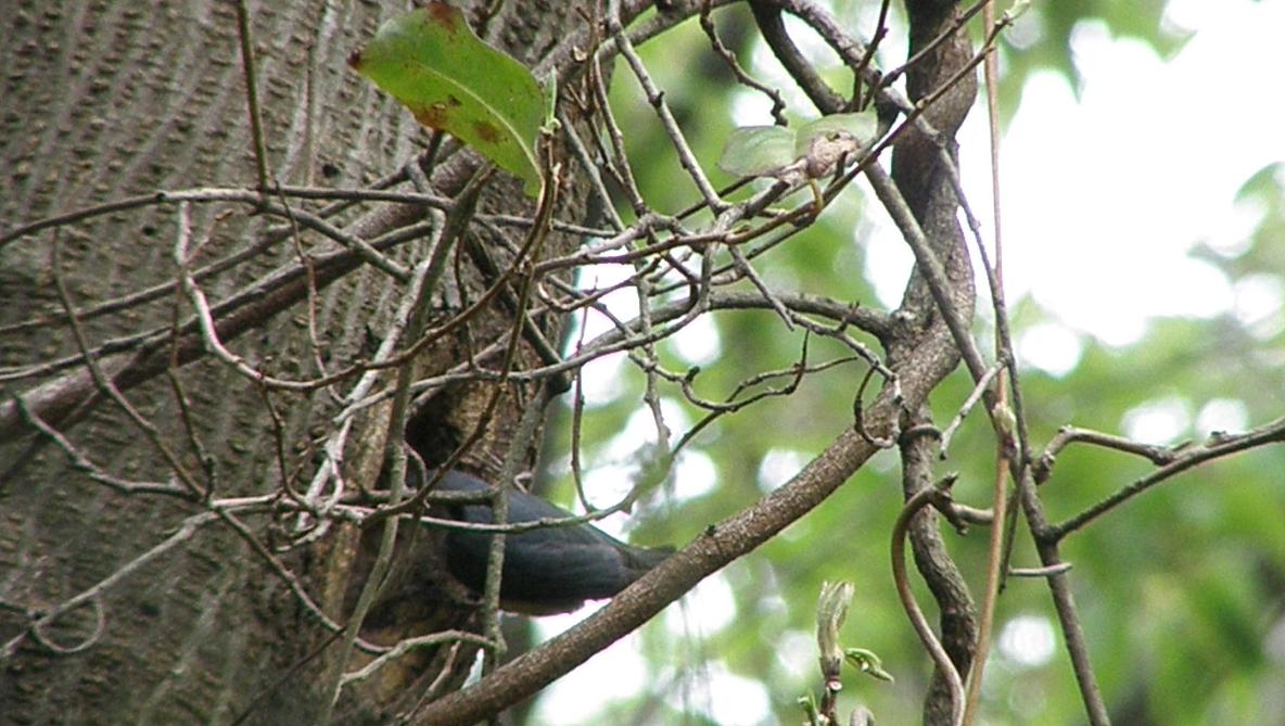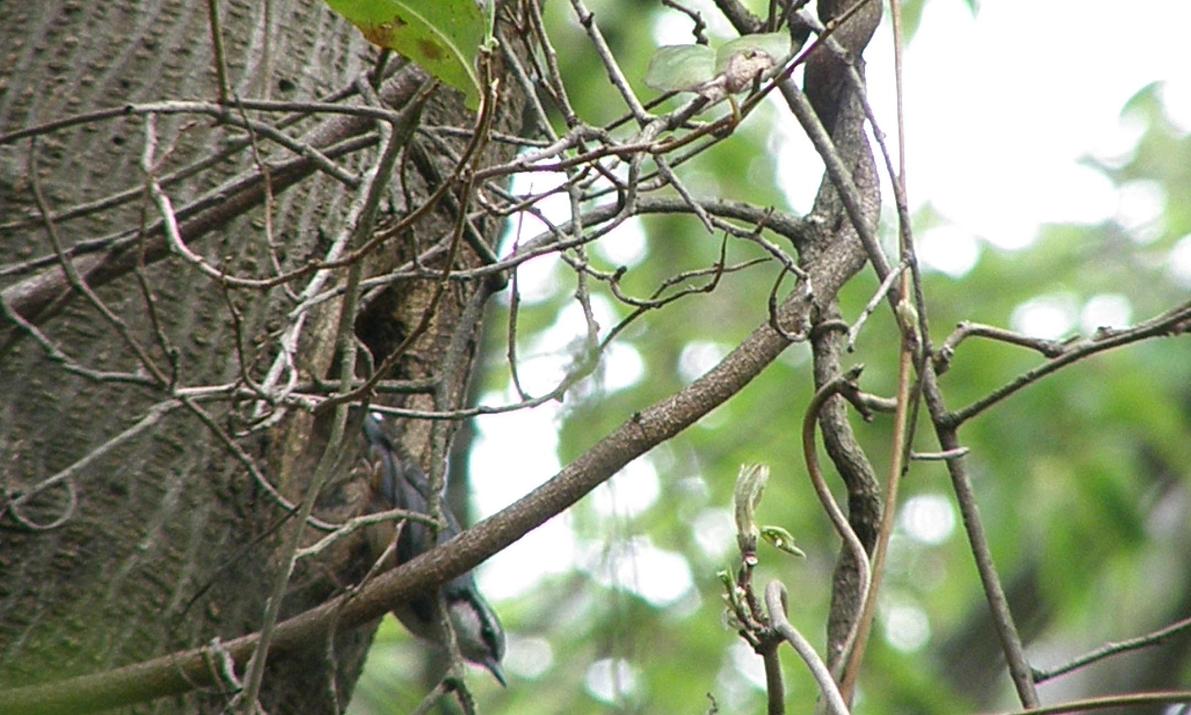 穴の大きさから見て、巣はアオゲラか何かの中古住宅を借りている様です。このゴジュウカラは、大きな入り口のリフォーム(土で小さくする)はしていない様です。