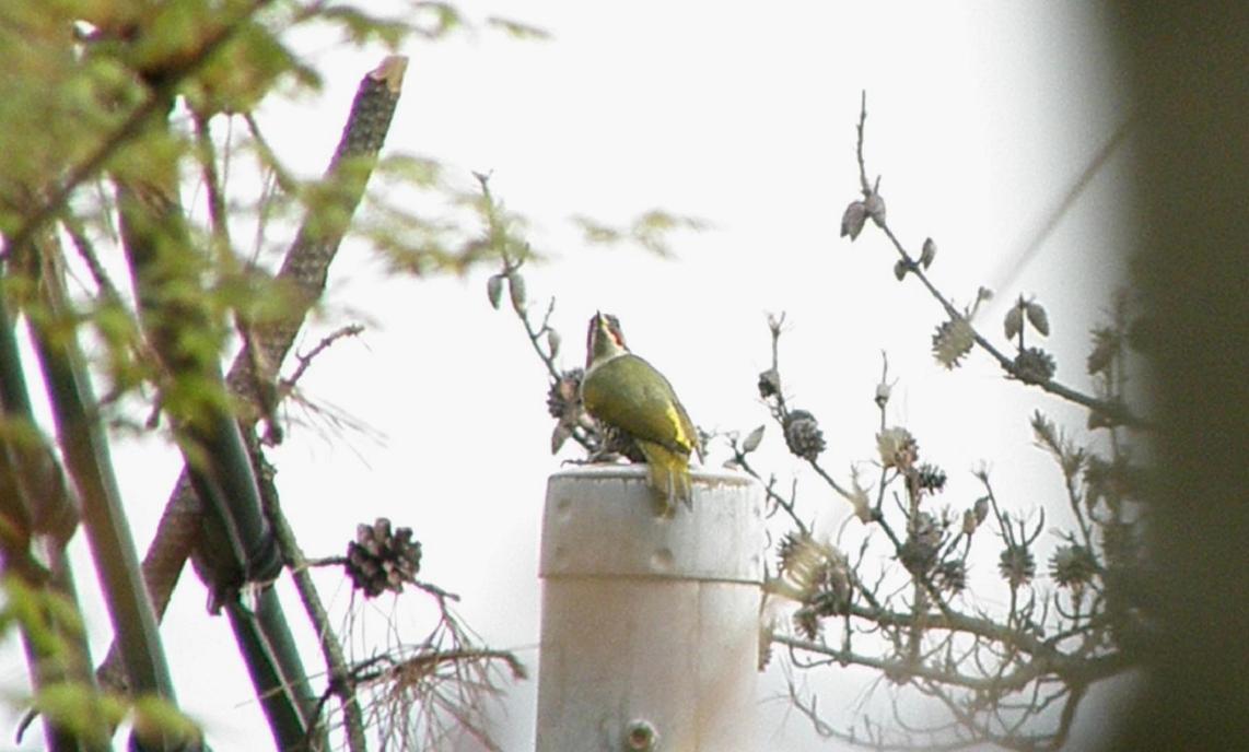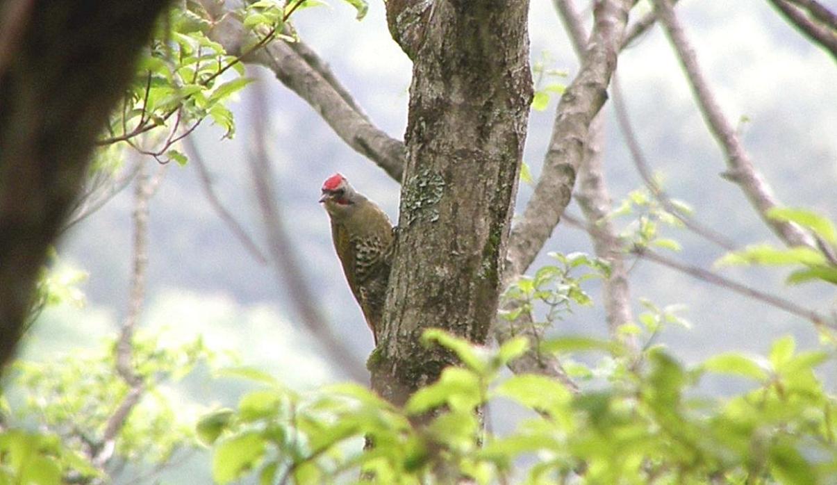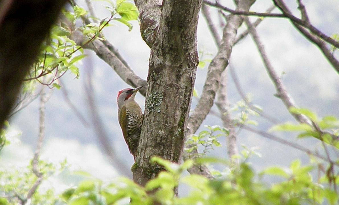 綺麗な緑色、頭の赤も前面から綺麗に見えるので、オスのアオゲラでしょう。大木や暗い樹木の多い場所に来るのと、警戒心が強いのでなかなか撮れない鳥だと思います(^^♪