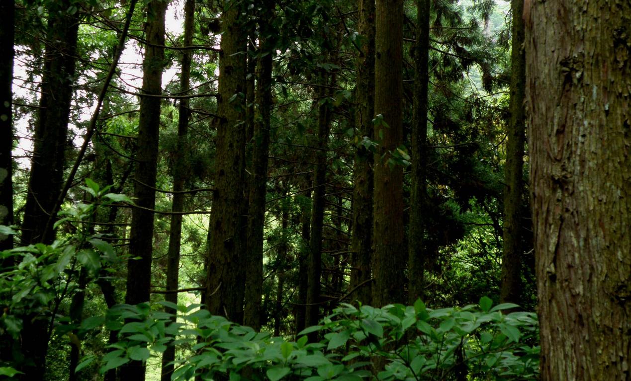 この様な大きな杉の樹間を飛びながら、鳴いたりフライングキャッチで羽虫などを捕らえています。後は天気の良い朝に待ち伏せ、絵にすれば良いだけです。