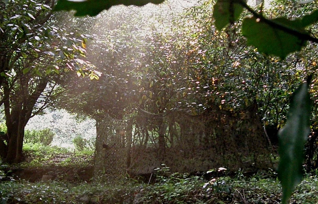 カモフラージュネットを張ってサンコウチョウを待ちます。