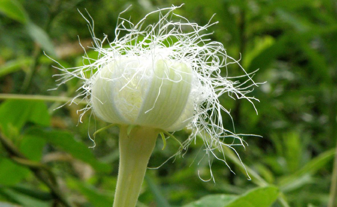 7時過ぎ、すでにカラスウリの花はしぼんでいます
