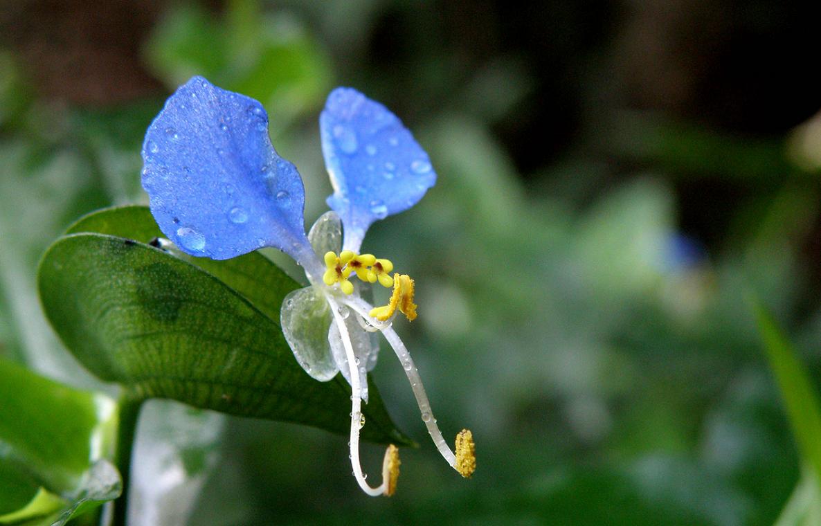 休耕田?林の外には日陰を選んで、ツユクサが咲いています