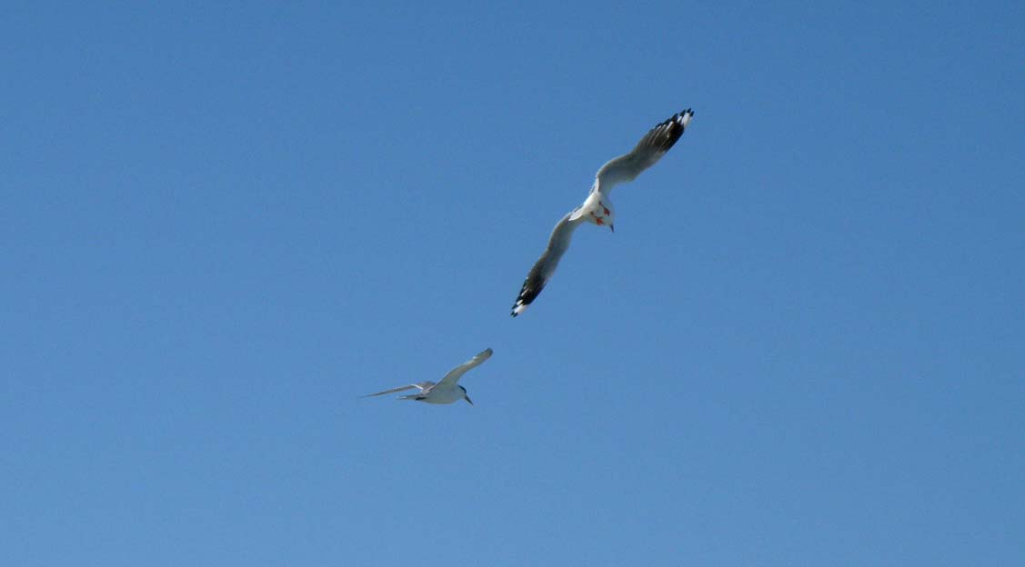 並んで飛ぶと、アジサシはかなり小さく見えます