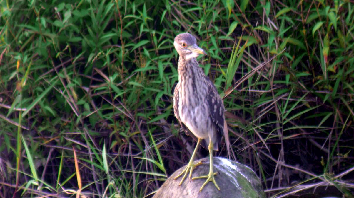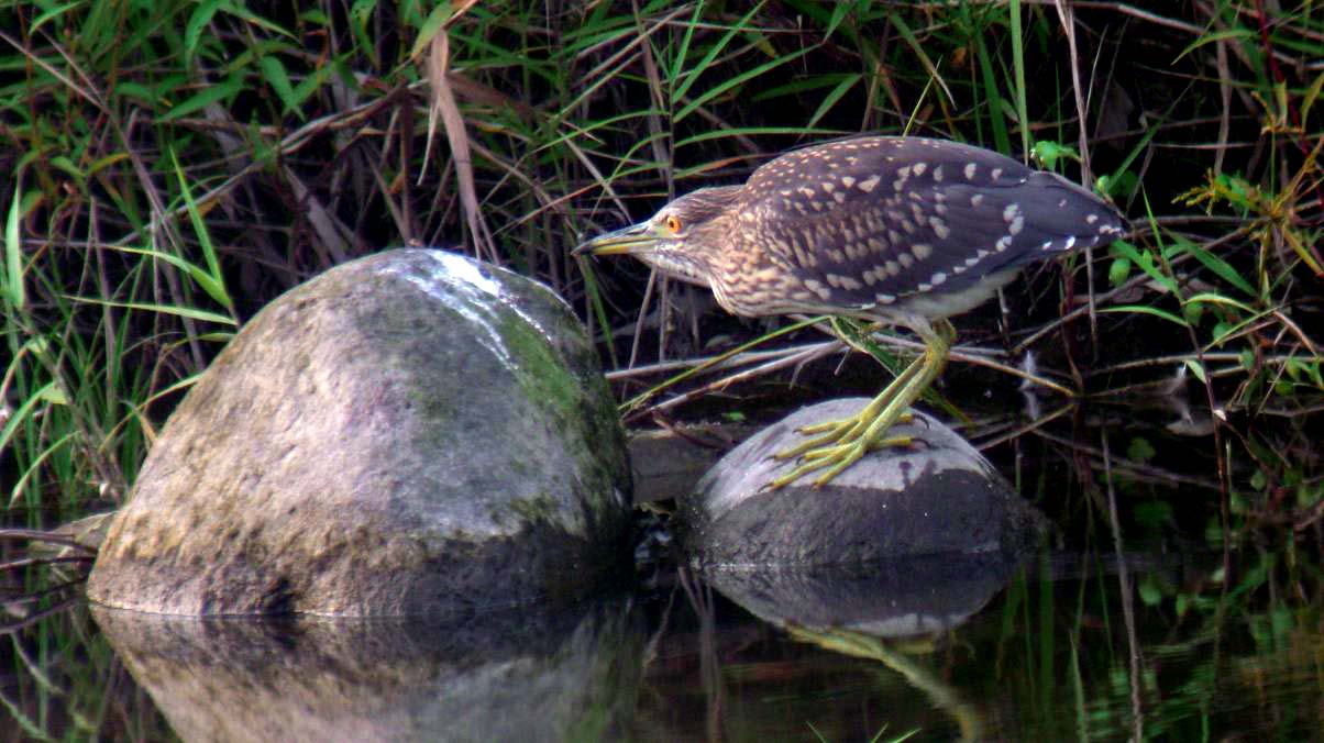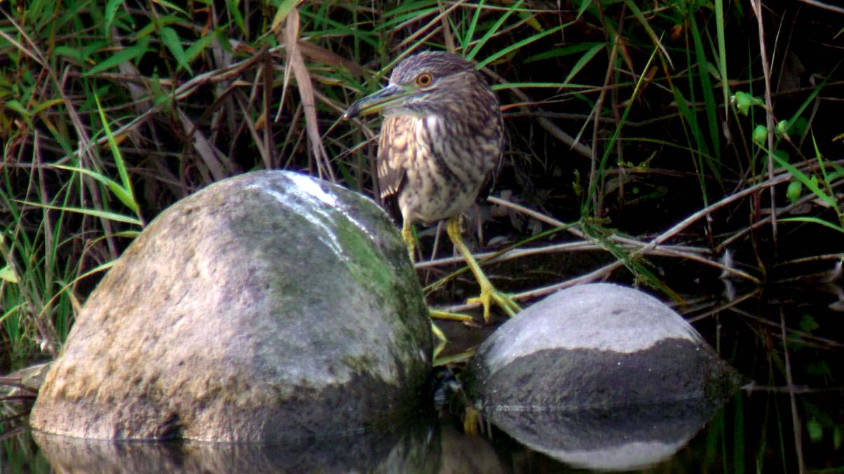 大分川です。どちらも同じ鳥ゴイサギで、成鳥になっていない若い個体をホシゴイと呼んでいます。