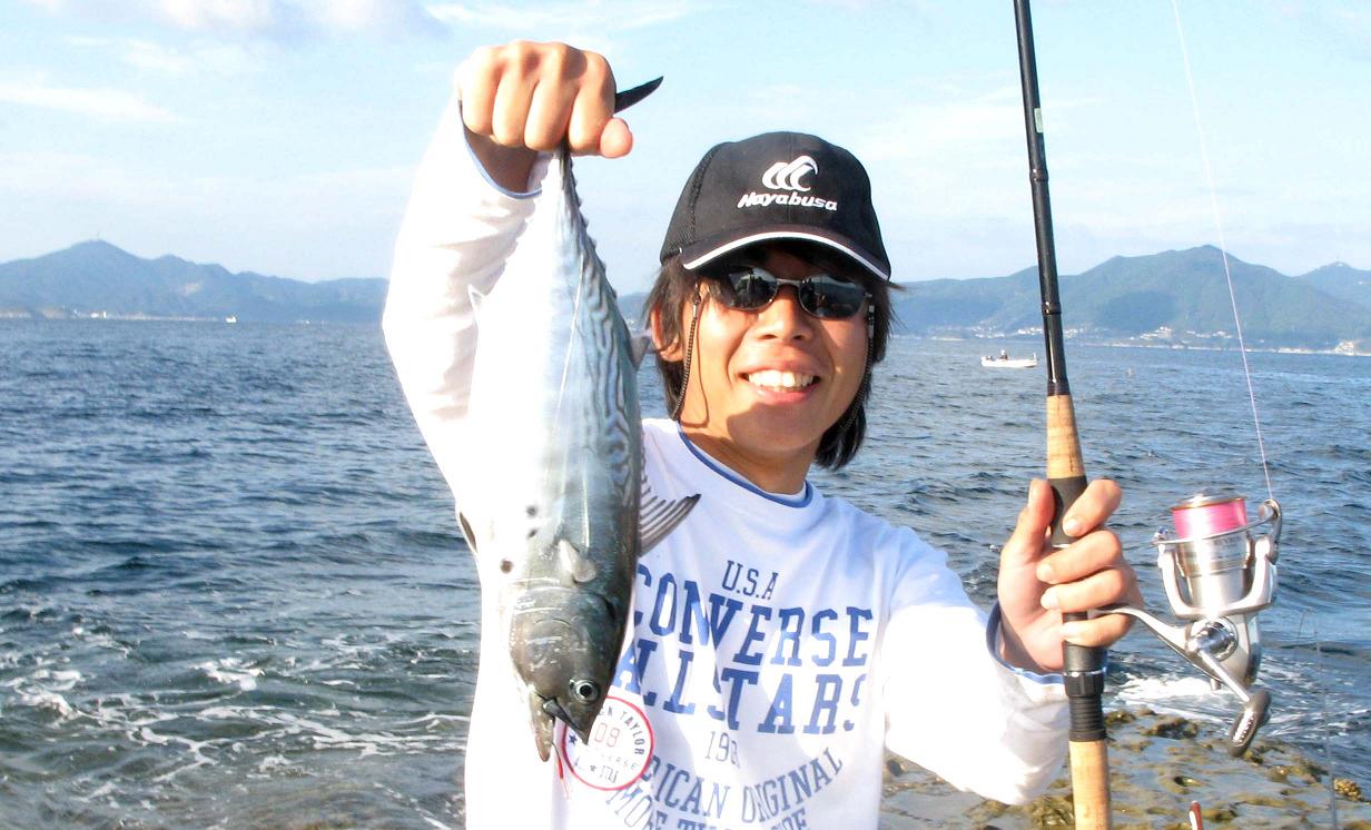 佐藤君、釣ったのはスマ。他にハマチ・大バラシも有り・・・流石に五島です