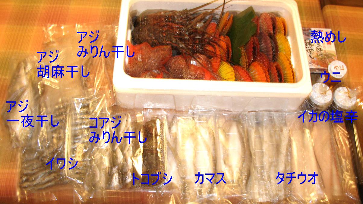 雨に打たれたご褒美に賞品の海産物が届きました。