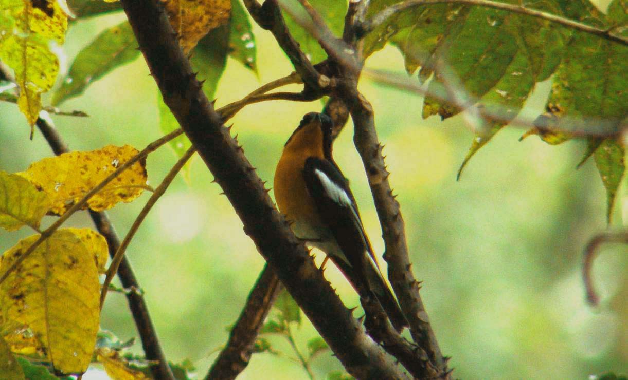 ムギマキのオスです。キビタキと良く似ています。眉班が白で短い